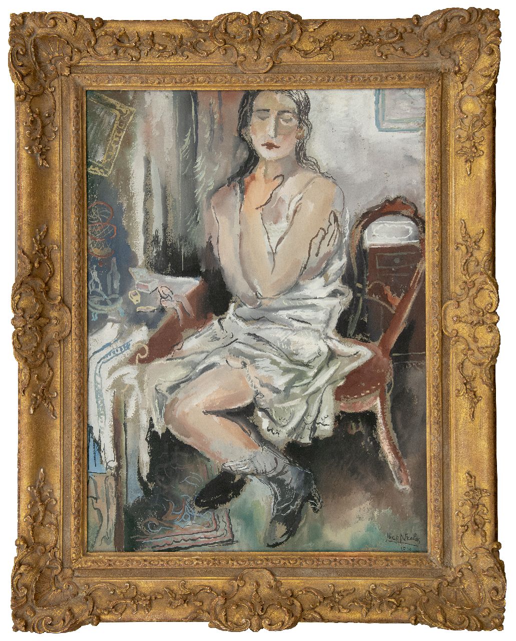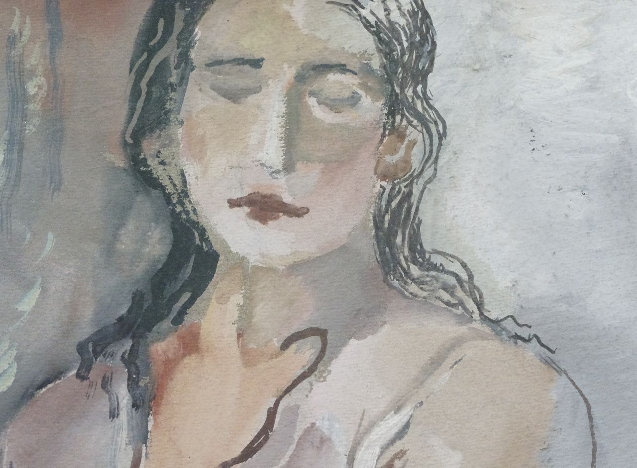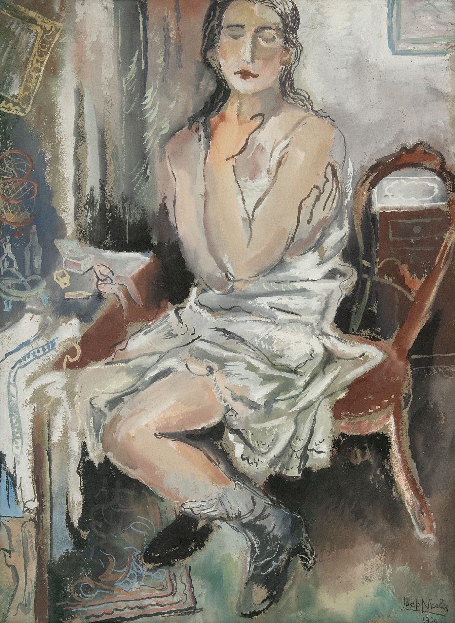 Joep Nicolas kunstwerk • aquarel • tekening • voorheen te koop Zittende vrouw