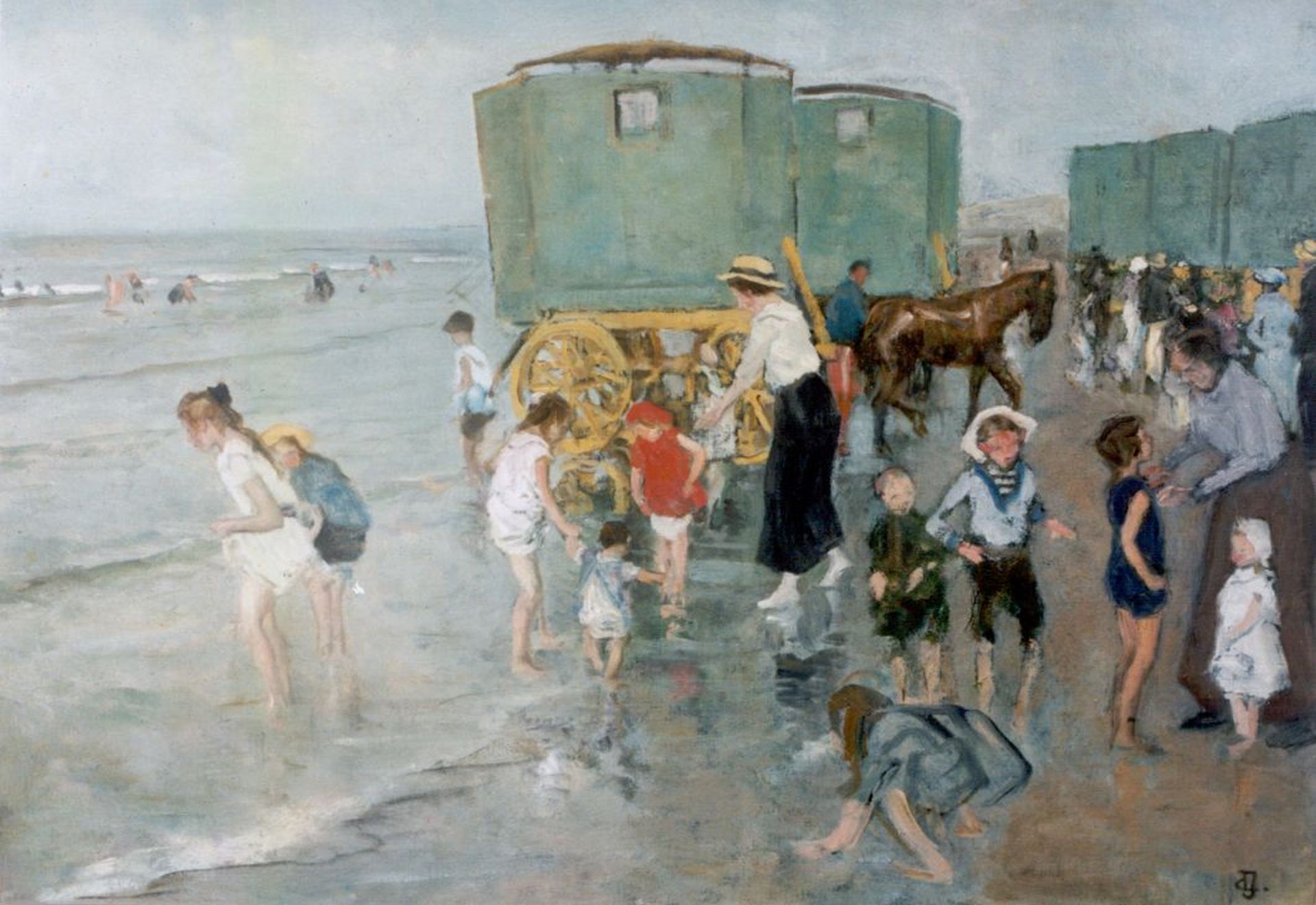 Johan Antoni de Jonge kunstwerk • schilderij • voorheen te koop Strandvermaak in Scheveningen