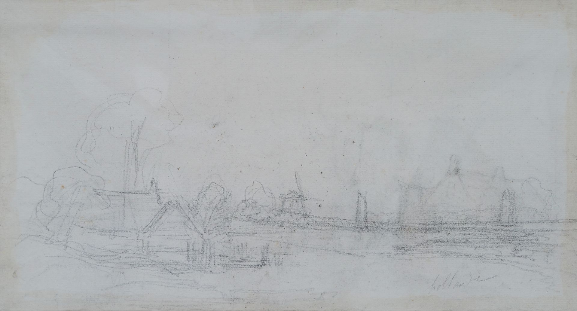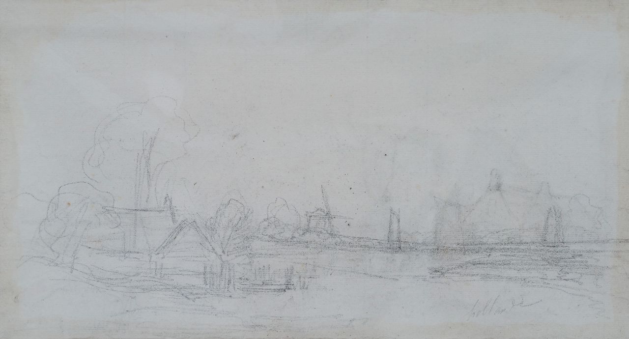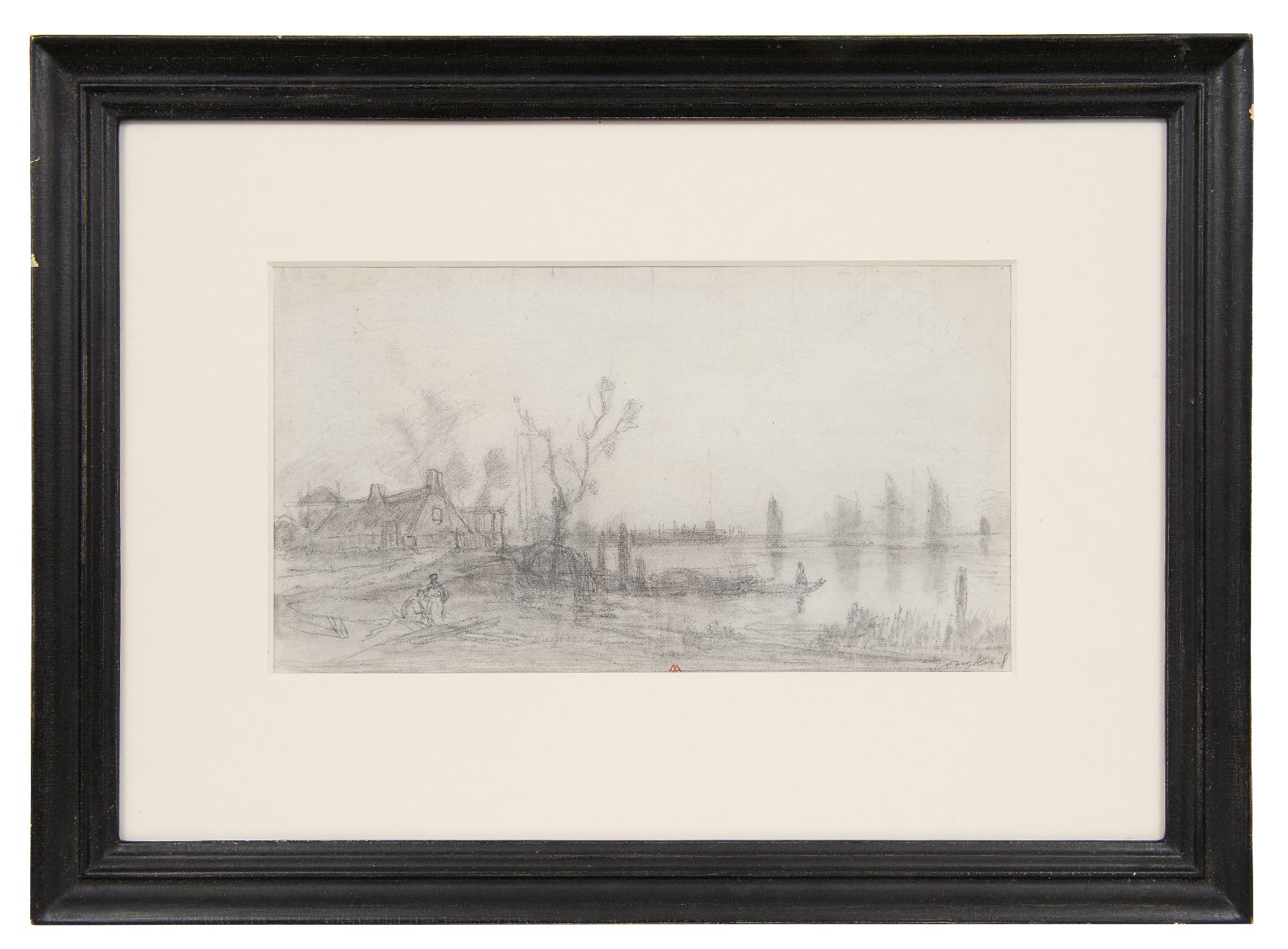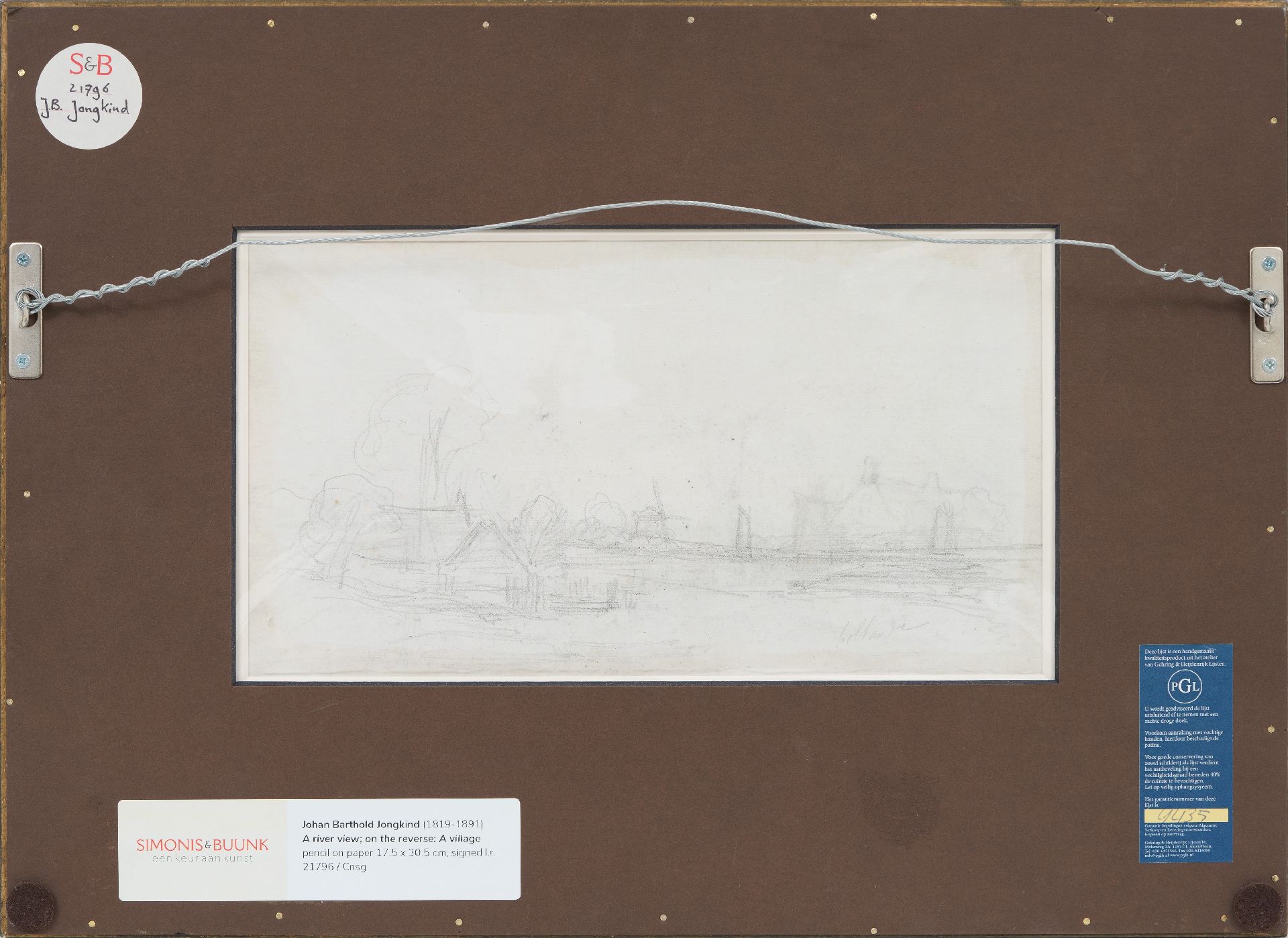 Johan Barthold Jongkind kunstwerk • aquarel • tekening • te koop Riviergezicht; verso: Dorpsgezicht