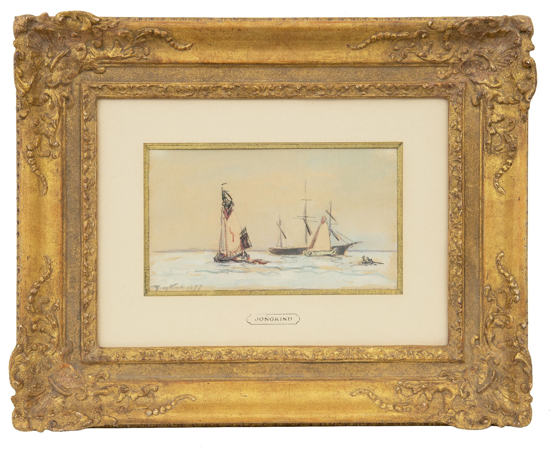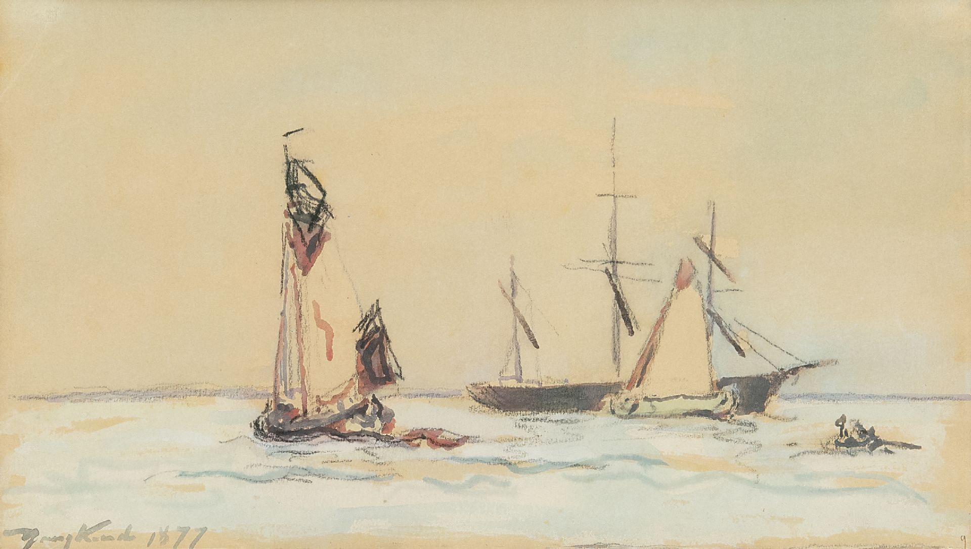 Johan Barthold Jongkind kunstwerk • aquarel • tekening • voorheen te koop Zeilschepen op de rivier
