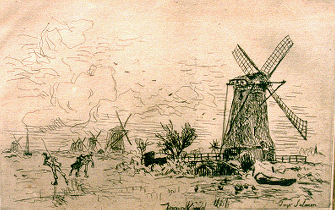 Johan Barthold Jongkind kunstwerk • grafiek • voorheen te koop IJsgezicht