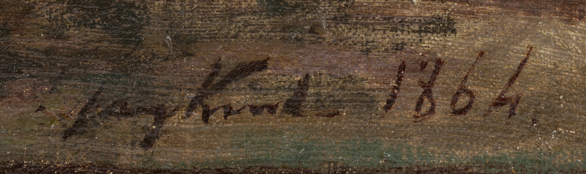 olieverf op doek 33,8 x 45,9 cm, gesigneerd rechtsonder en gedateerd 1864