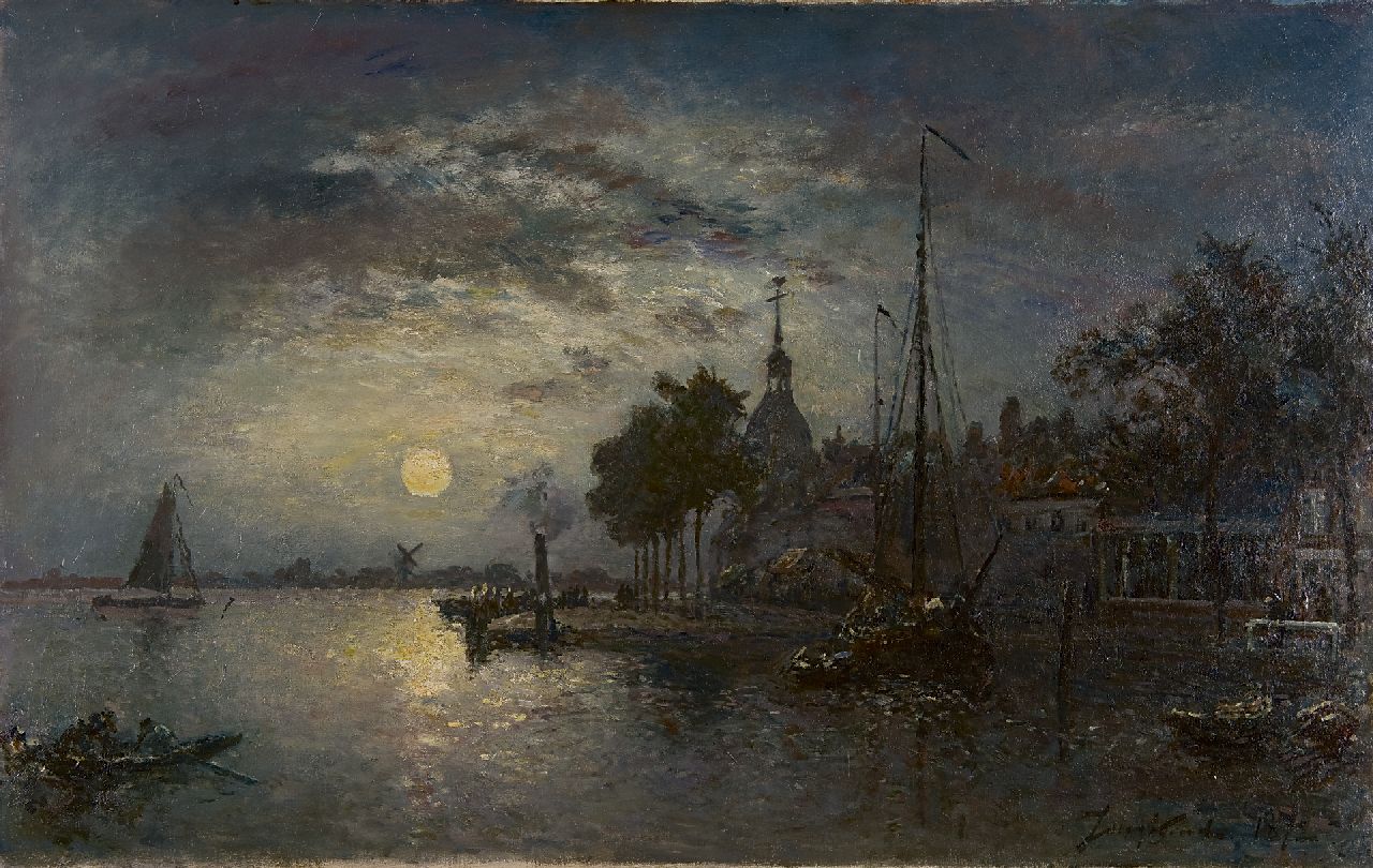 Johan Barthold Jongkind kunstwerk • schilderij • voorheen te koop Clair de Lune, Dordrecht