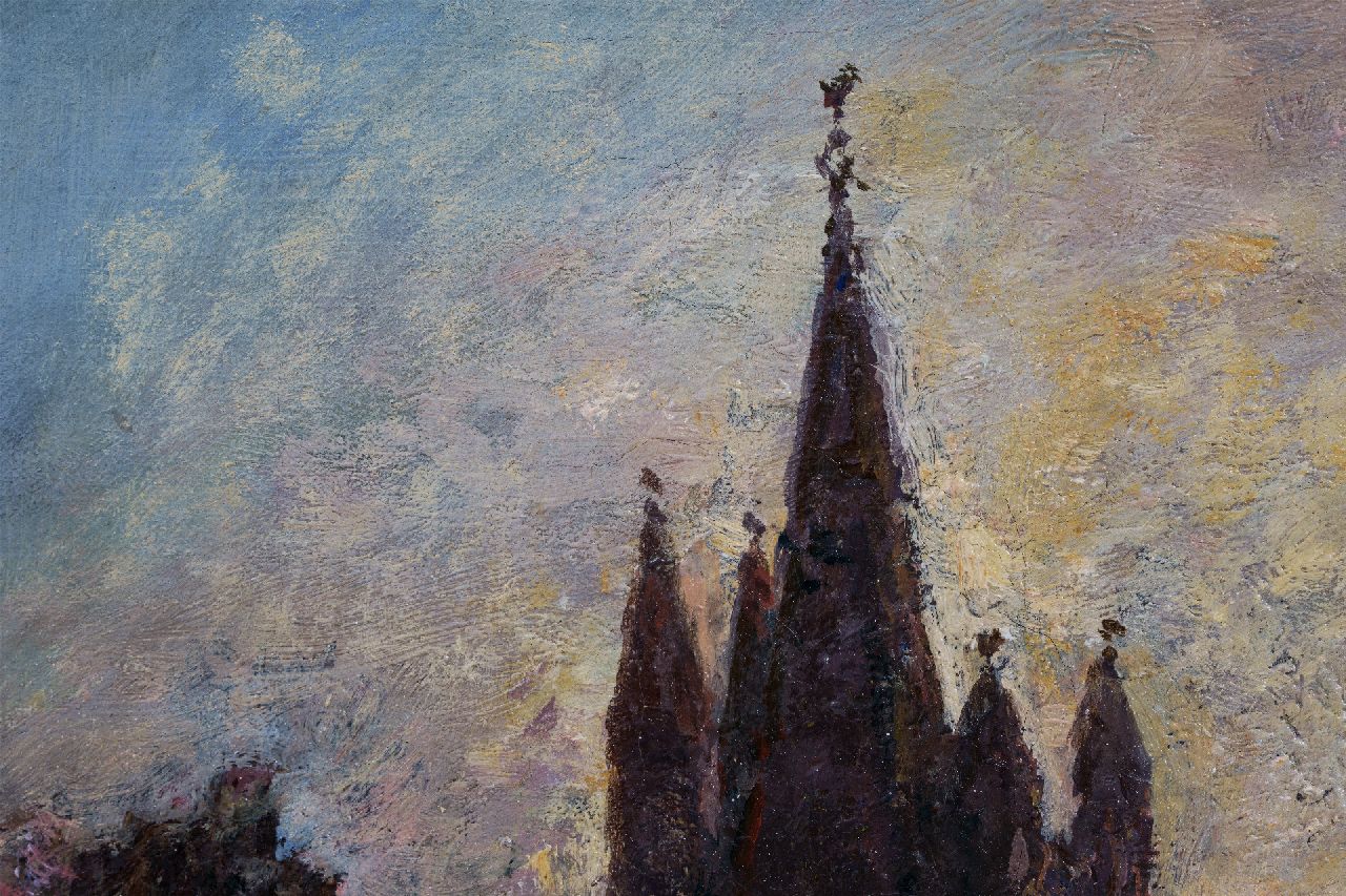 Johan Barthold Jongkind kunstwerk • schilderij • te koop Coucher de soleil sur l'église, Hollande