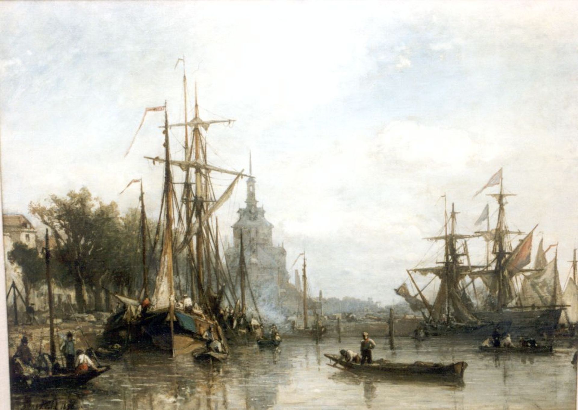 Johan Barthold Jongkind kunstwerk • schilderij • voorheen te koop De haven van Rotterdam bij de oude Delftse hoofdpoort