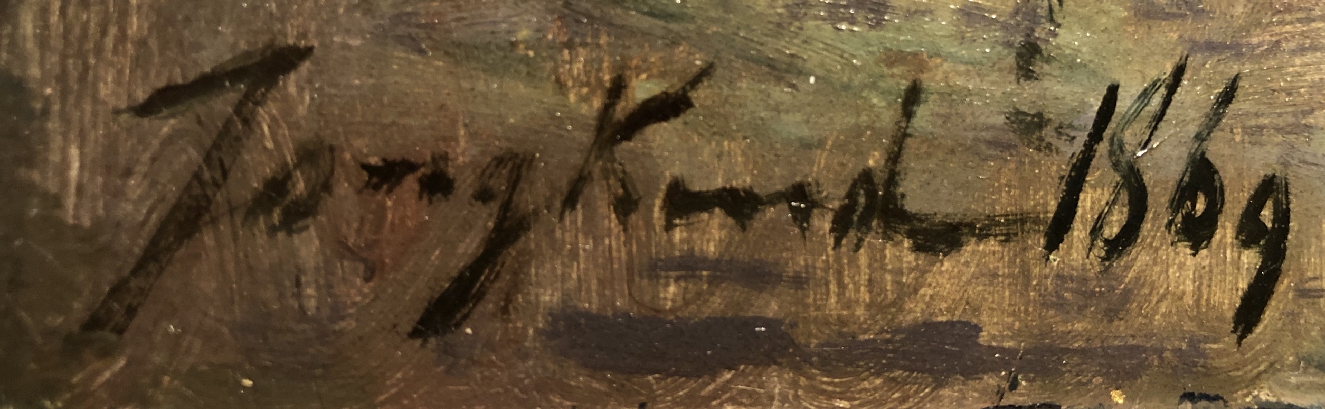 olieverf op doek 33,5 x 42,5 cm, gesigneerd linksonder en gedateerd 1869