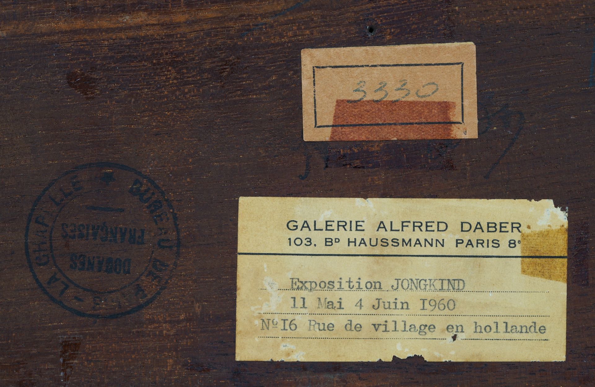 Tentoonstelling: Parijs, Galerie Alfred Daber, 'Jongkind, Boudin: Marines et Paysages', 9 febr.-3 maart 1951; Parijs, Galerie Alfred Daber, 'Exposition Jongkind', 11 mei-4 juni 1951; Parijs, Galerie Alfred Daber, 'Exposition Jongkind', 11 mei-4 juni 1960.