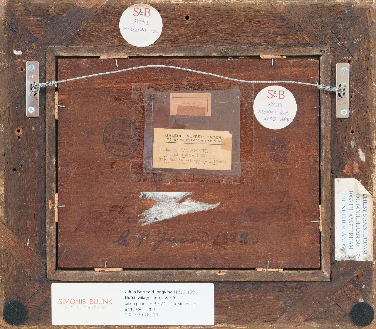 Tentoonstelling: Parijs, Galerie Alfred Daber, 'Jongkind, Boudin: Marines et Paysages', 9 febr.-3 maart 1951; Parijs, Galerie Alfred Daber, 'Exposition Jongkind', 11 mei-4 juni 1951; Parijs, Galerie Alfred Daber, 'Exposition Jongkind', 11 mei-4 juni 1960.