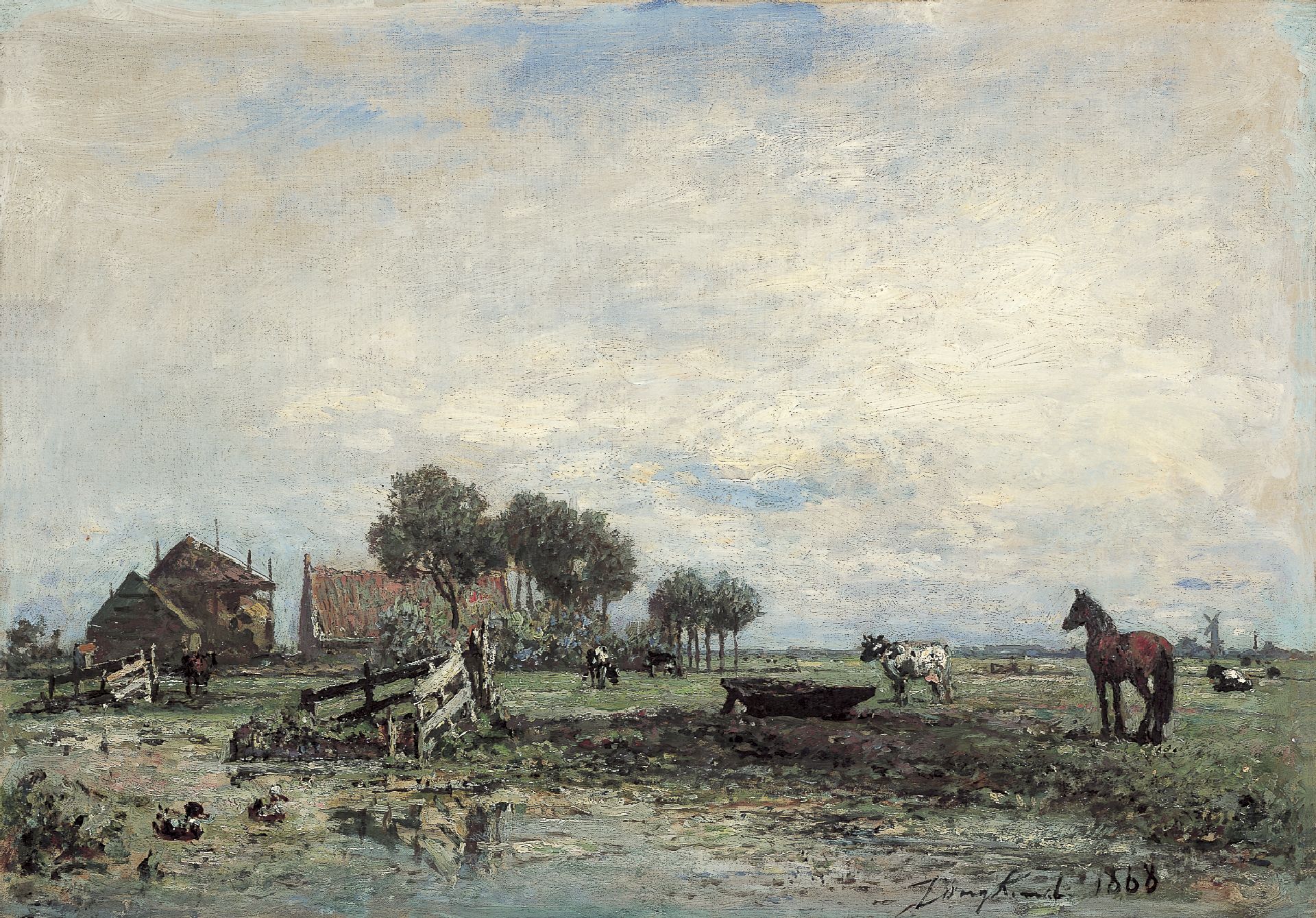 Johan Barthold Jongkind kunstwerk • schilderij • voorheen te koop Hollandse boerderij