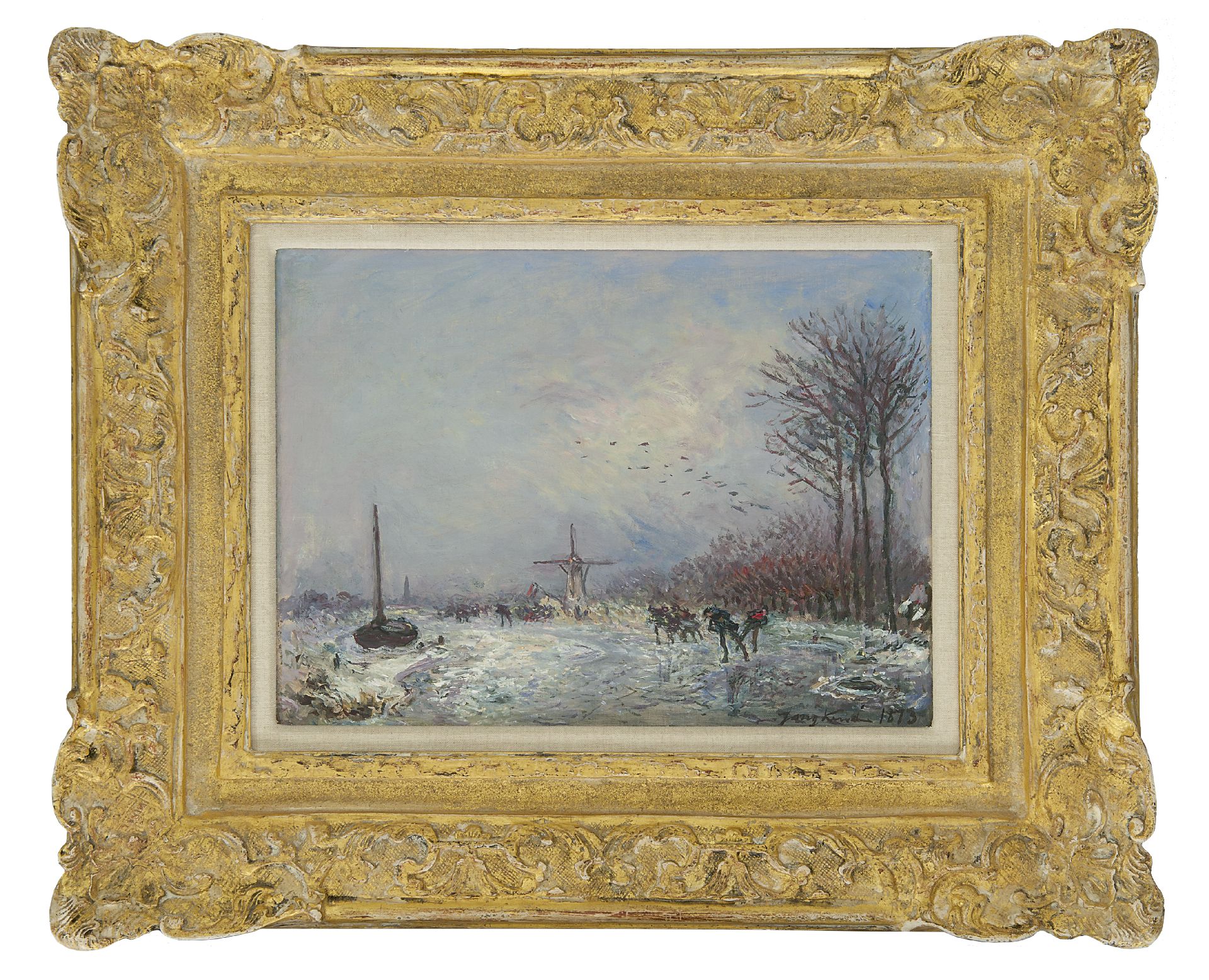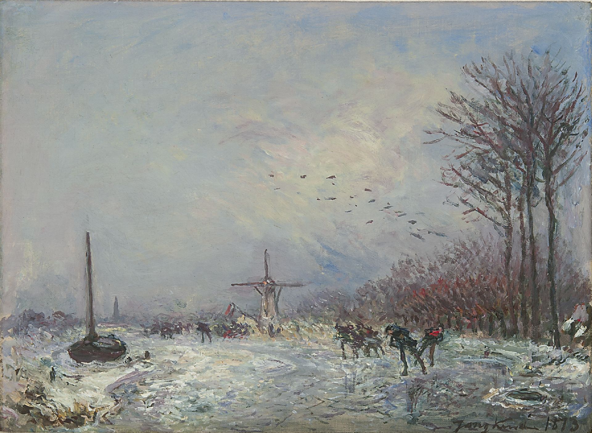 Johan Barthold Jongkind kunstwerk • schilderij • voorheen te koop Hollandse vaart met schaatsers