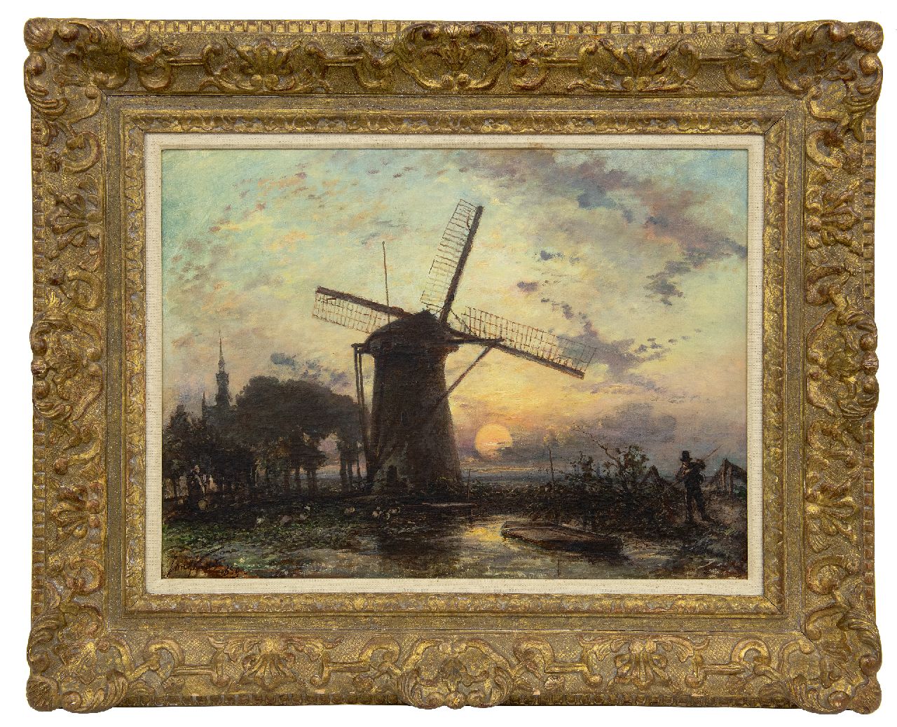 Johan Barthold Jongkind kunstwerk • schilderij • voorheen te koop Molen bij zonsondergang bij Overschie