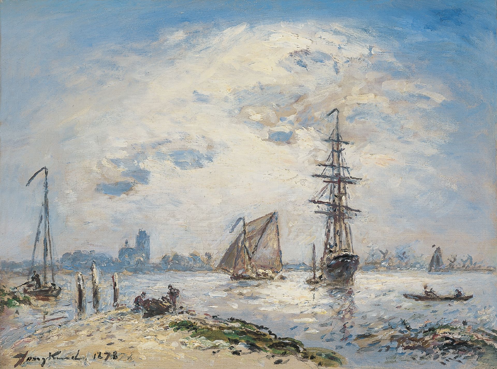 Johan Barthold Jongkind kunstwerk • schilderij • voorheen te koop Schepen op de Oude Maas bij Dordrecht