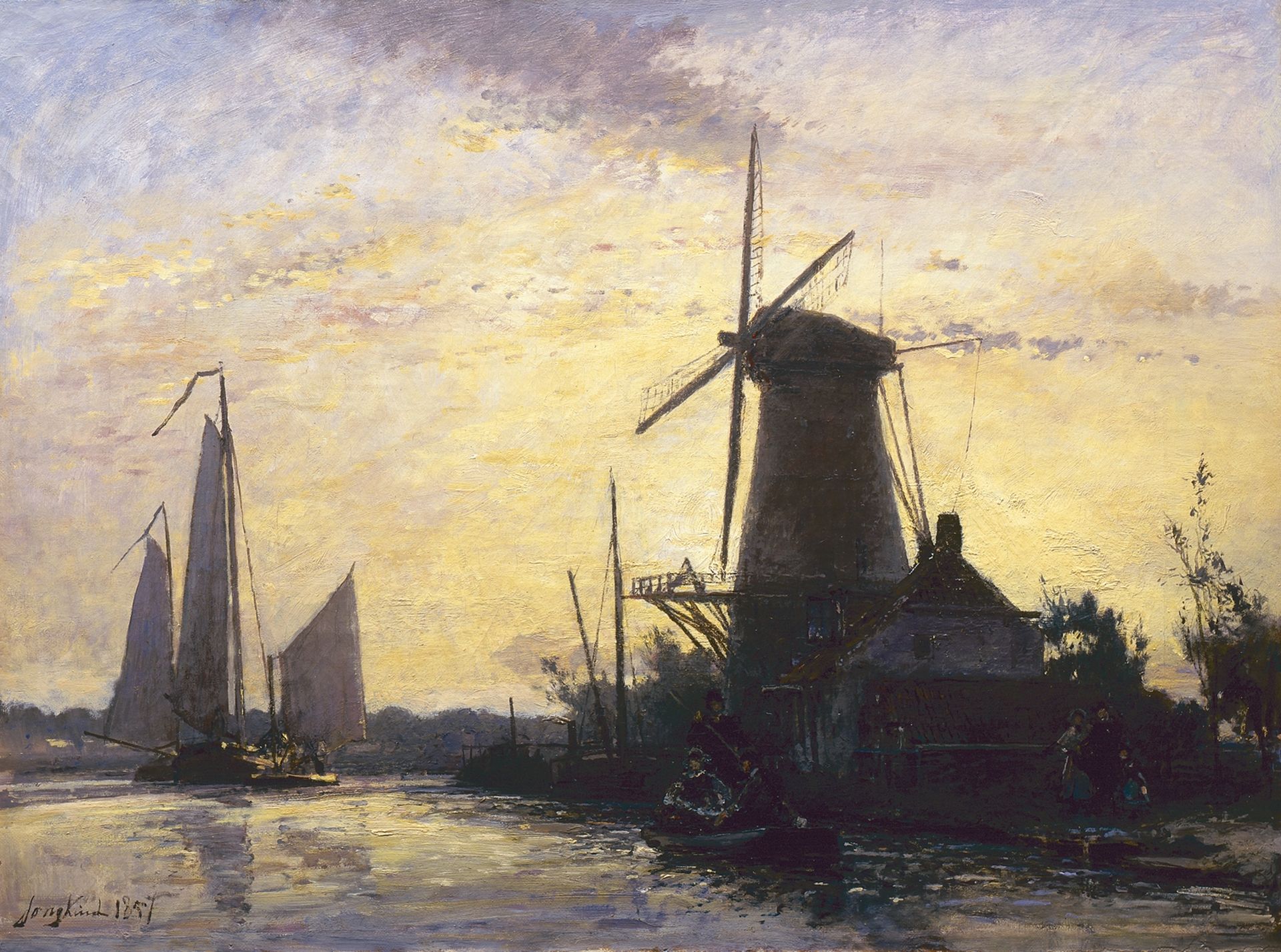 Een groot deel van zijn leven bracht Jongkind door in Frankrijk. Regelmatig reisde hij naar Nederland waar hij, vooral in en om Rotterdam, inspiratie opdeed voor zijn stads- en havengezichten en landschappen met schepen. Uniek waren zijn landschappen bij maanlicht. Zijn losse, vrije penseelstreek verlenen zijn schilderijen de directheid van het werk van de impressionisten. Toch schilderde hij ze allemaal in zijn atelier. Franse tijdgenoten bewonderden zijn werk en algemeen zagen ze hem als de wegbereider van het impressionisme. Manet noemde hem de vader van de moderne landschapschilders.