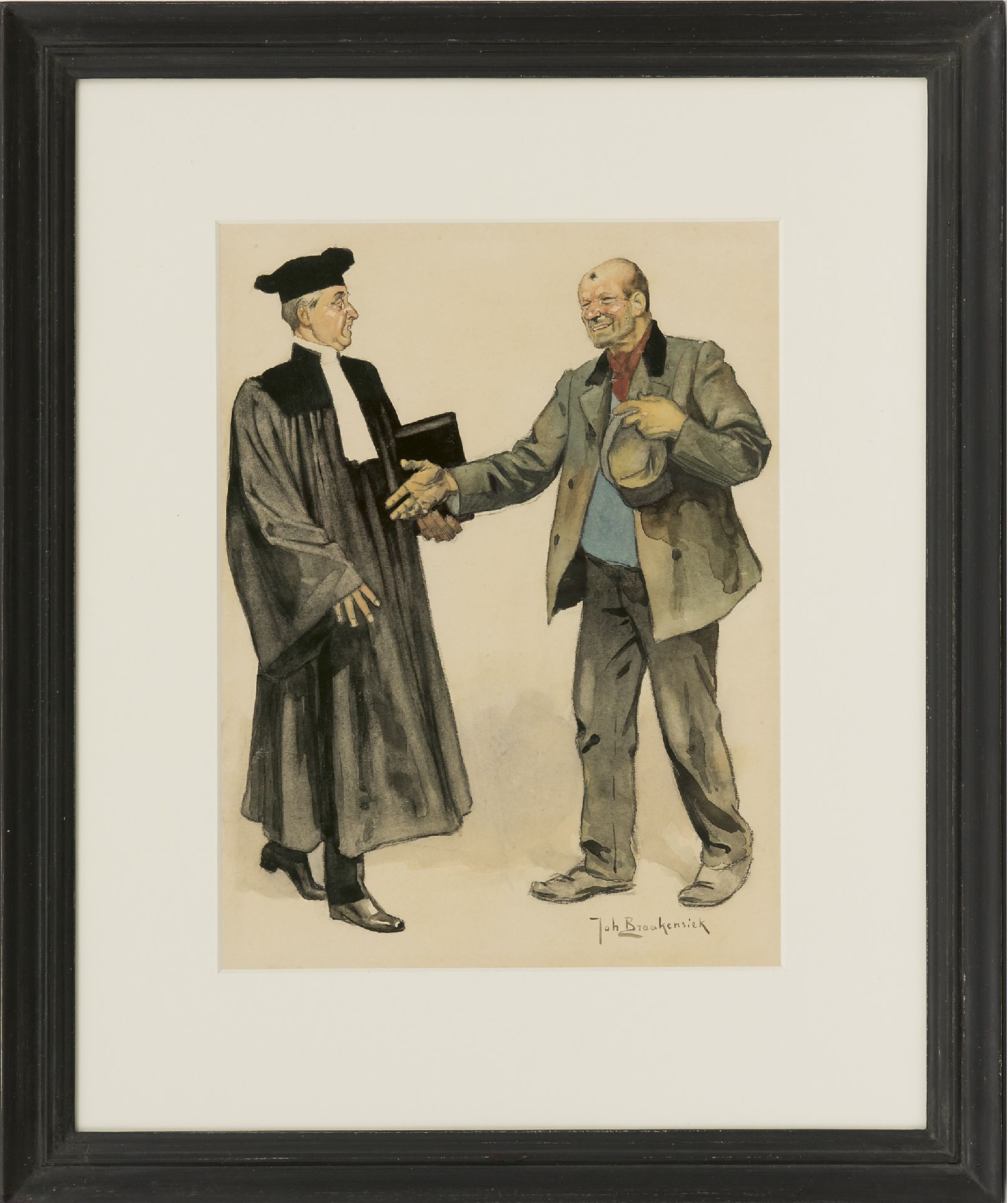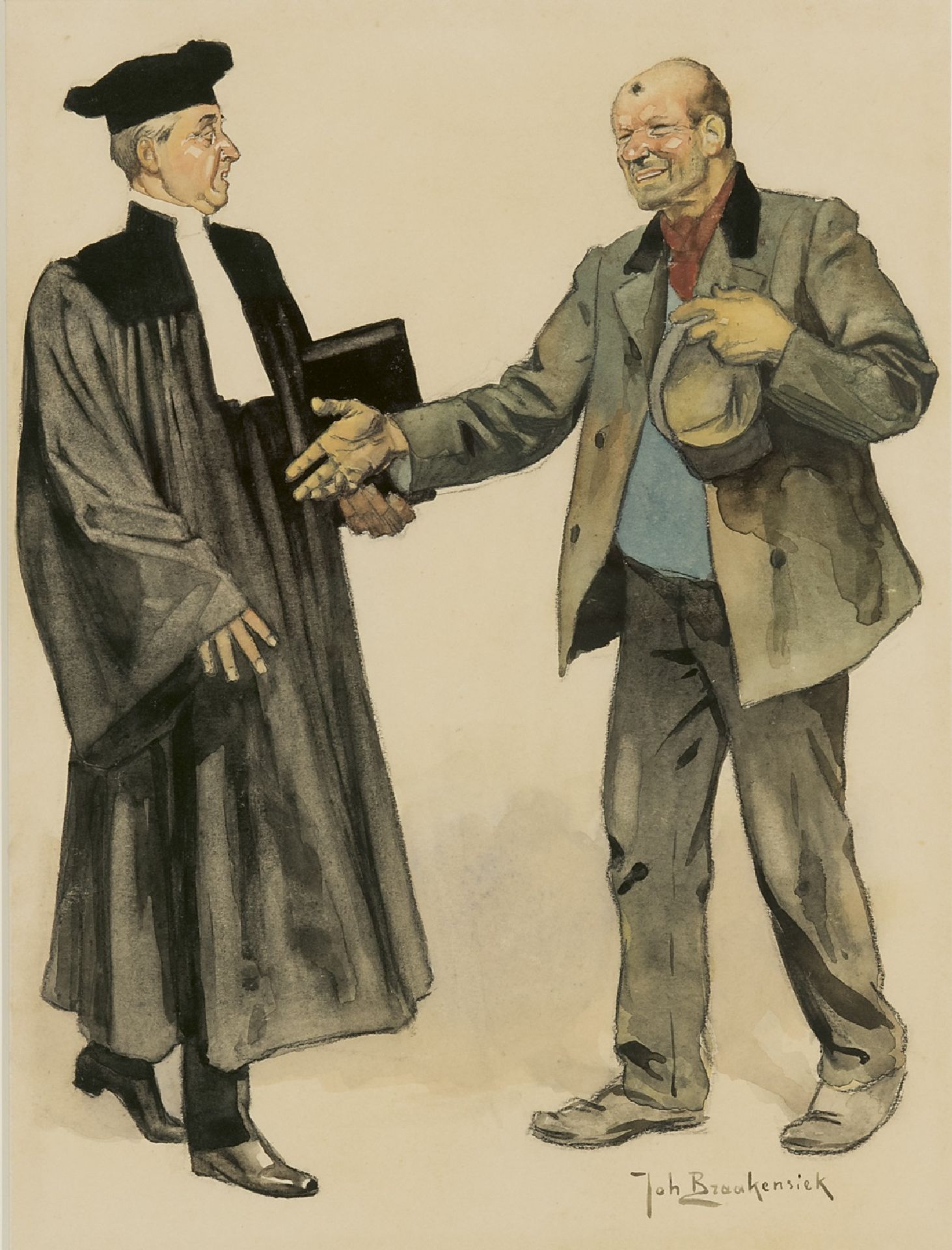 Johan Braakensiek kunstwerk • aquarel • tekening • voorheen te koop De advocaat en zijn cliënt
