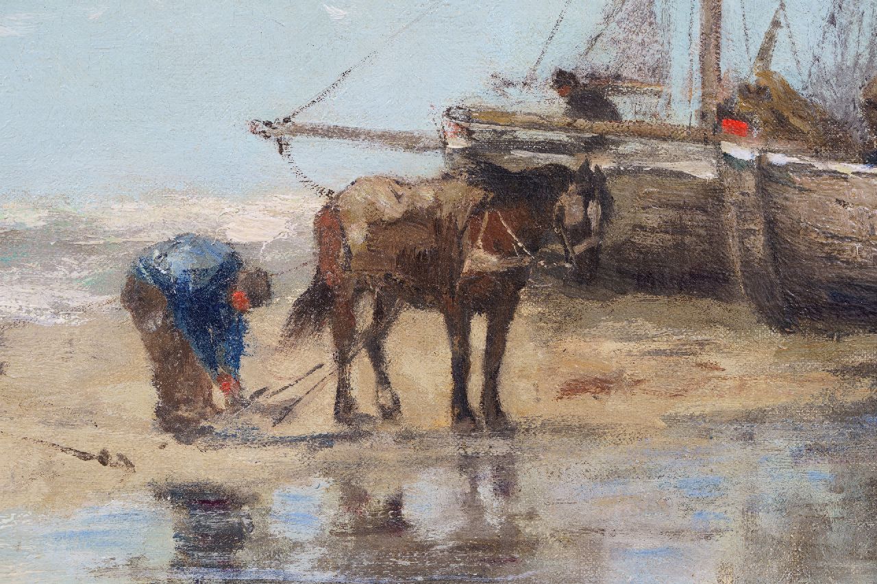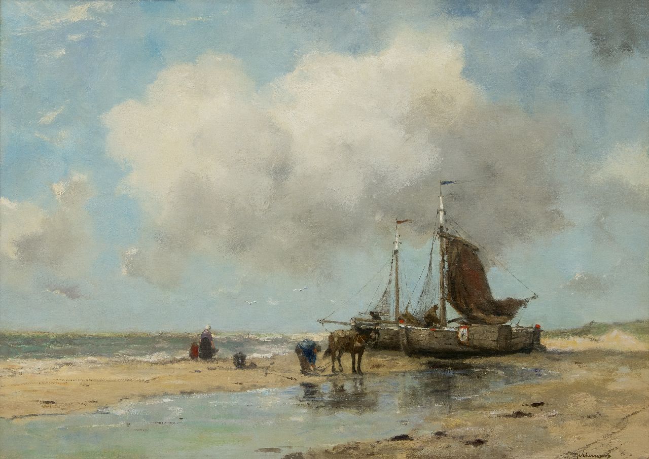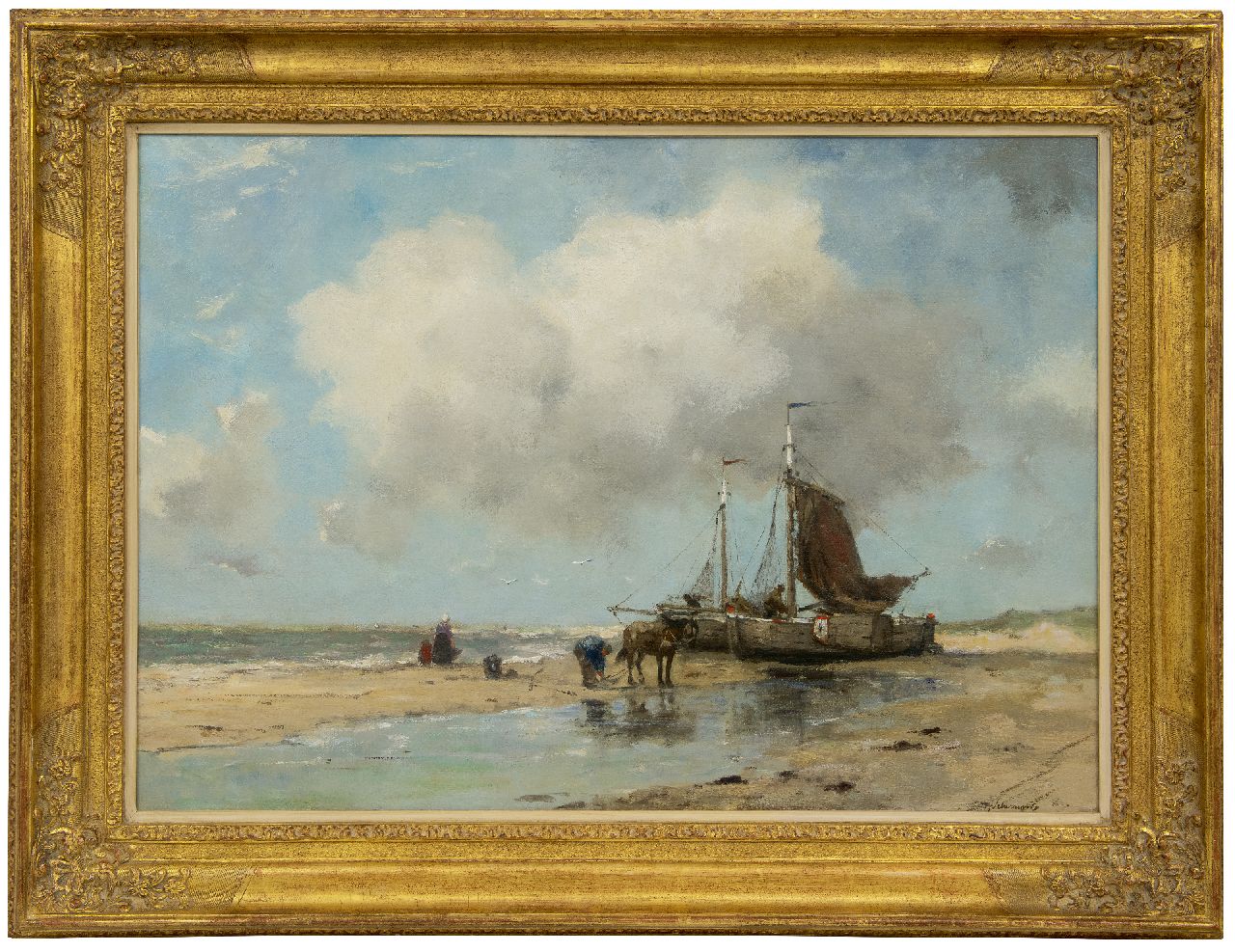 Johan Frederik Cornelis Scherrewitz kunstwerk • schilderij • te koop Bomschuiten op het strand