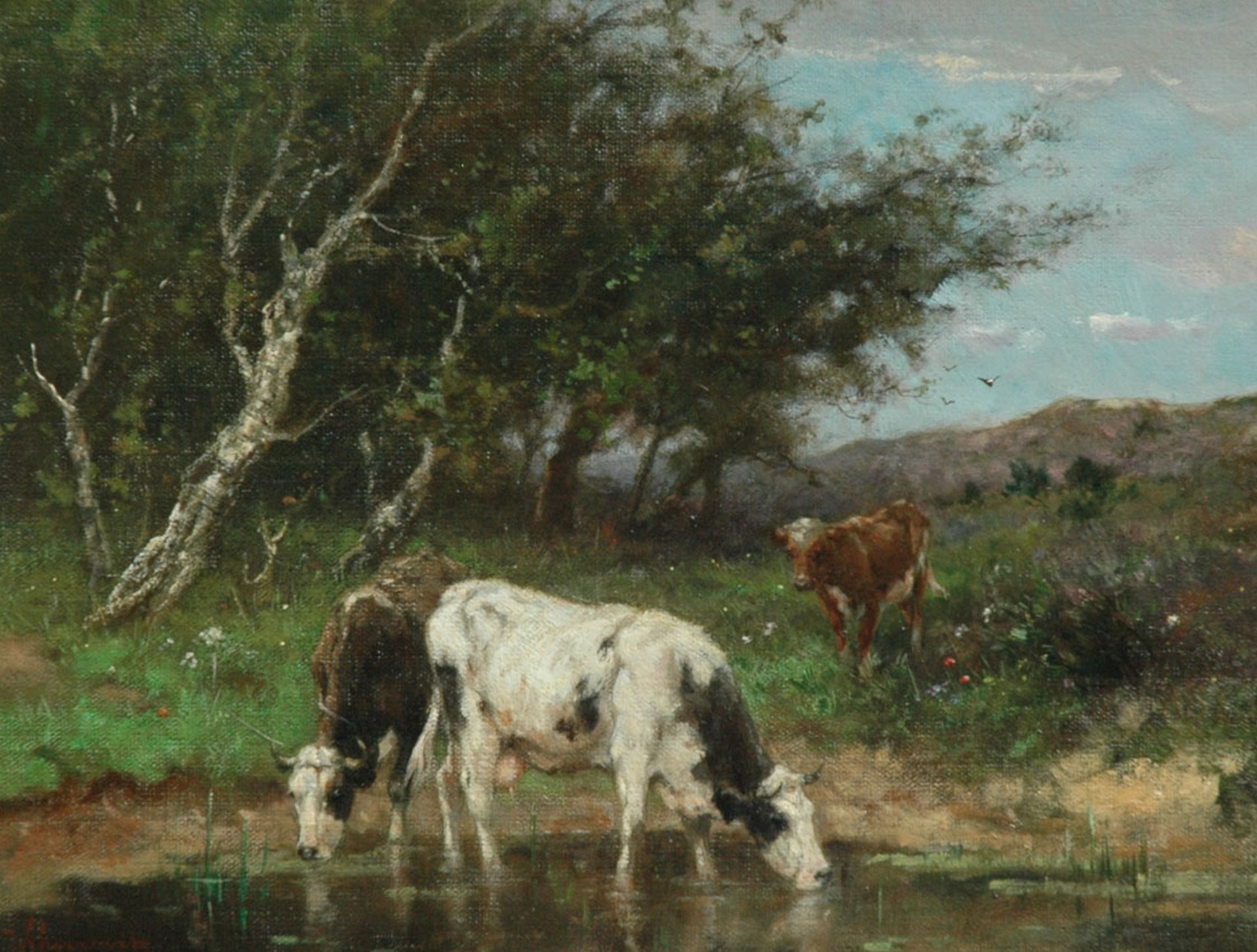 Johan Frederik Cornelis Scherrewitz kunstwerk • schilderij • voorheen te koop Drinkende koeien