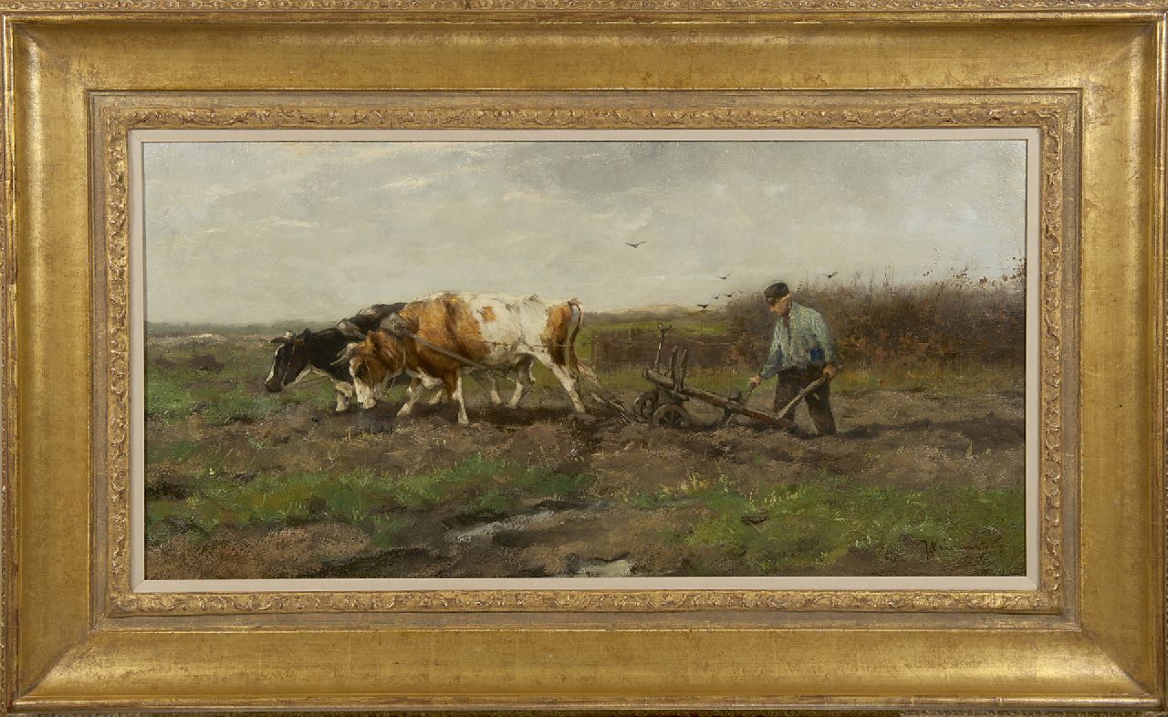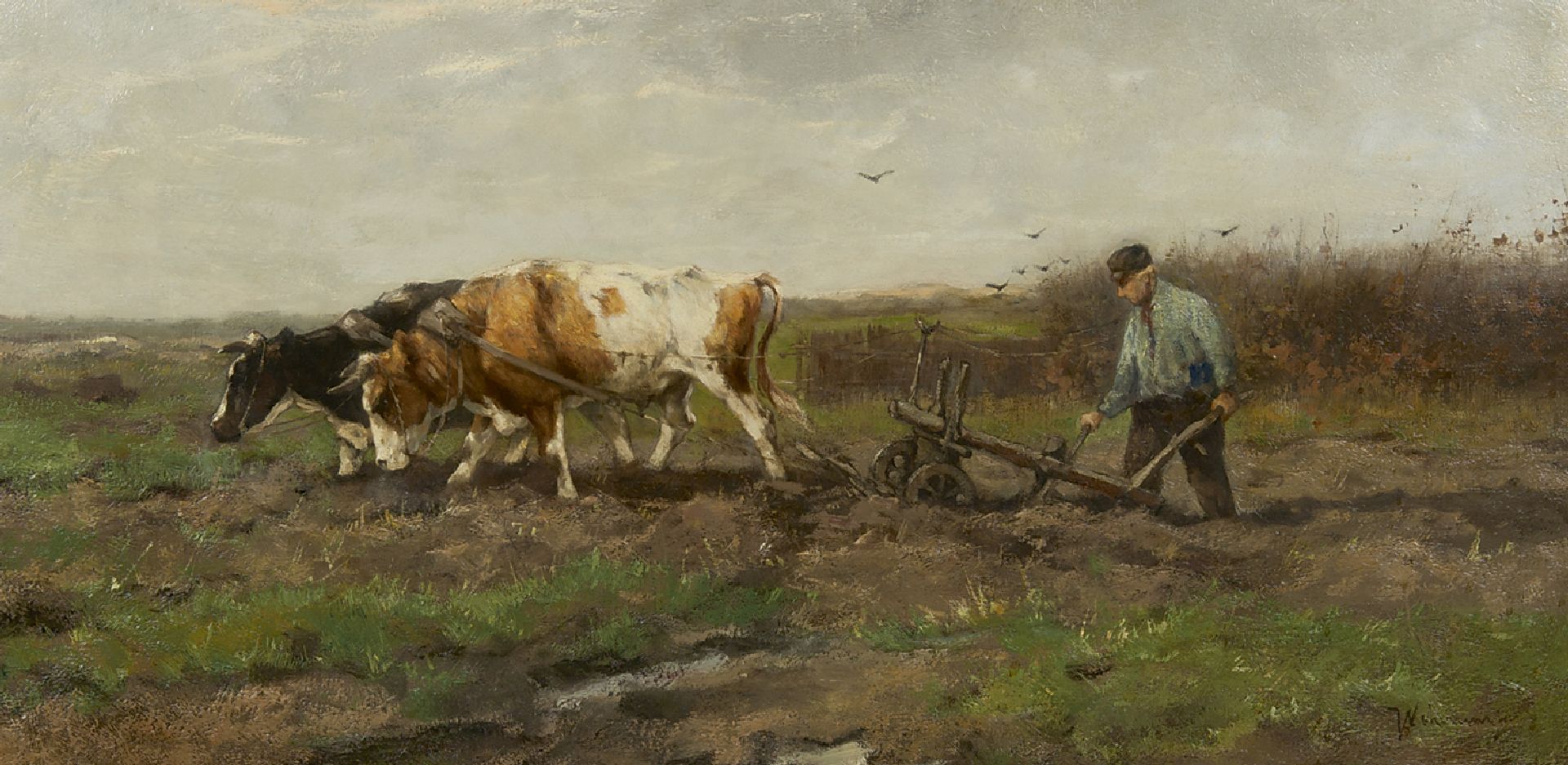 Johan Frederik Cornelis Scherrewitz kunstwerk • schilderij • te koop Ploegende boer