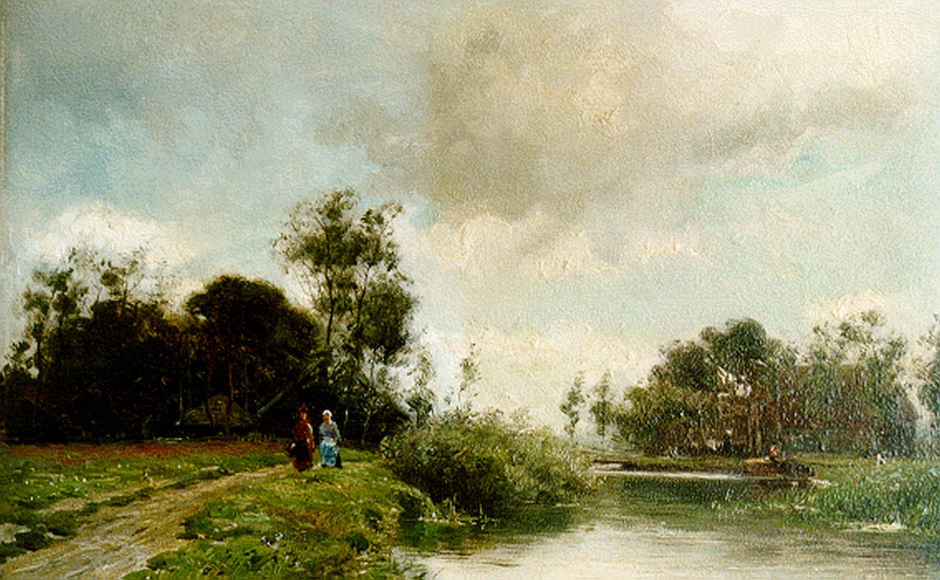 Johan Hendrik Doeleman kunstwerk • schilderij • voorheen te koop Rivierlandschap met hengelaar bij roeiboot