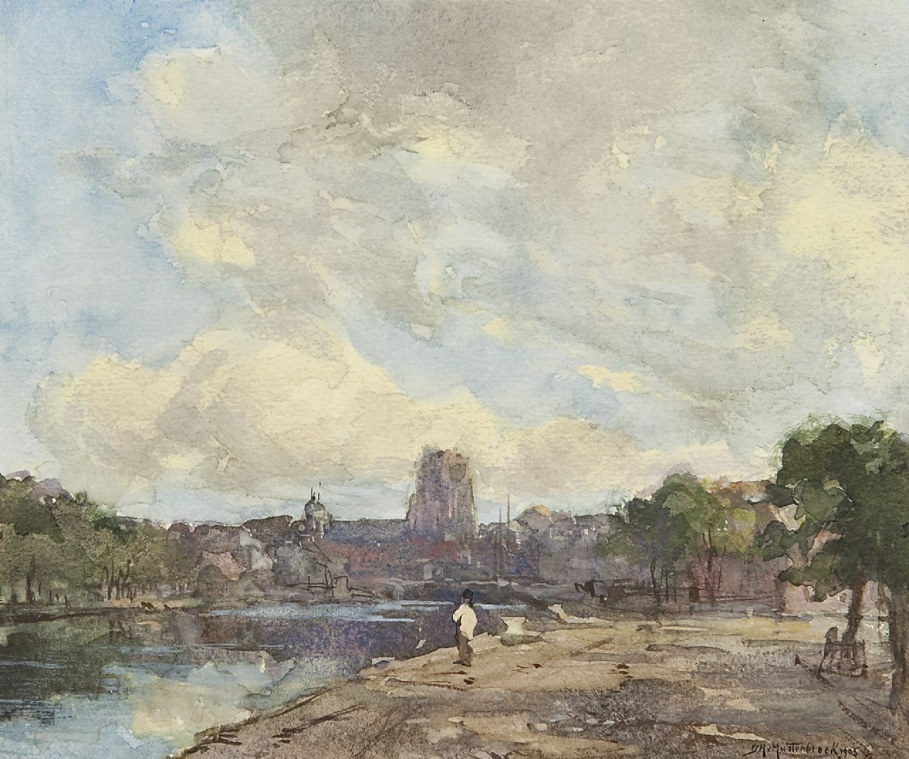 aquarel op papier 20,0 x 23,7 cm, gesigneerd rechtsonder en gedateerd 1903