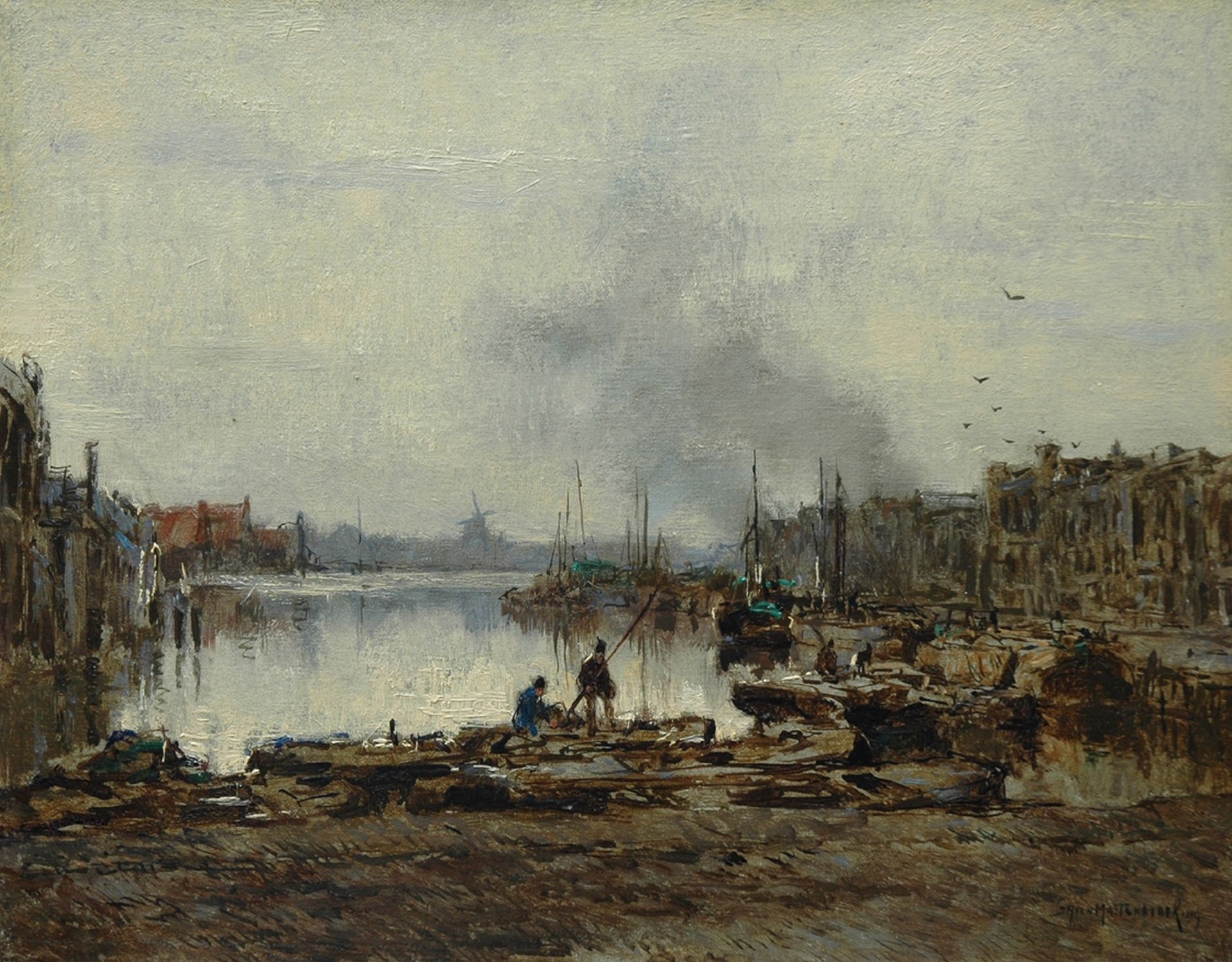 Johan Hendrik van Mastenbroek kunstwerk • schilderij • voorheen te koop De Delfshavense Schie, gezien vanaf het Lage Erf