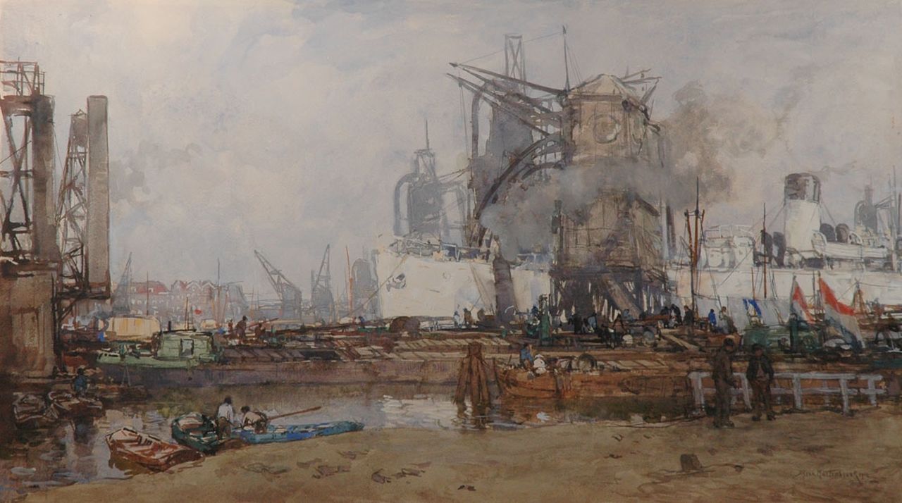 Johan Hendrik van Mastenbroek is bekend geworden als schilder van de Rotterdamse havens, de Maas en de Zuiderzeewerken. Zijn werk documenteert als het ware de grote technische vooruitgang en de snel toenemende bedrijvigheid in de Rotterdamse havens na 1900. De schilder schetste graag buiten bij regenachtig weer om de schoonheid van de luchten en de heldere kleuren: 'Ik kon staan smullen van de heerlijke wolkenformaties en van den aan kleuren zo rijken strijd tusschen zon en wolken' schreef hij aan een vriend in 1945. Mastenbroek oogstte bij zijn leven al in brede kring veel succes met zijn werk.