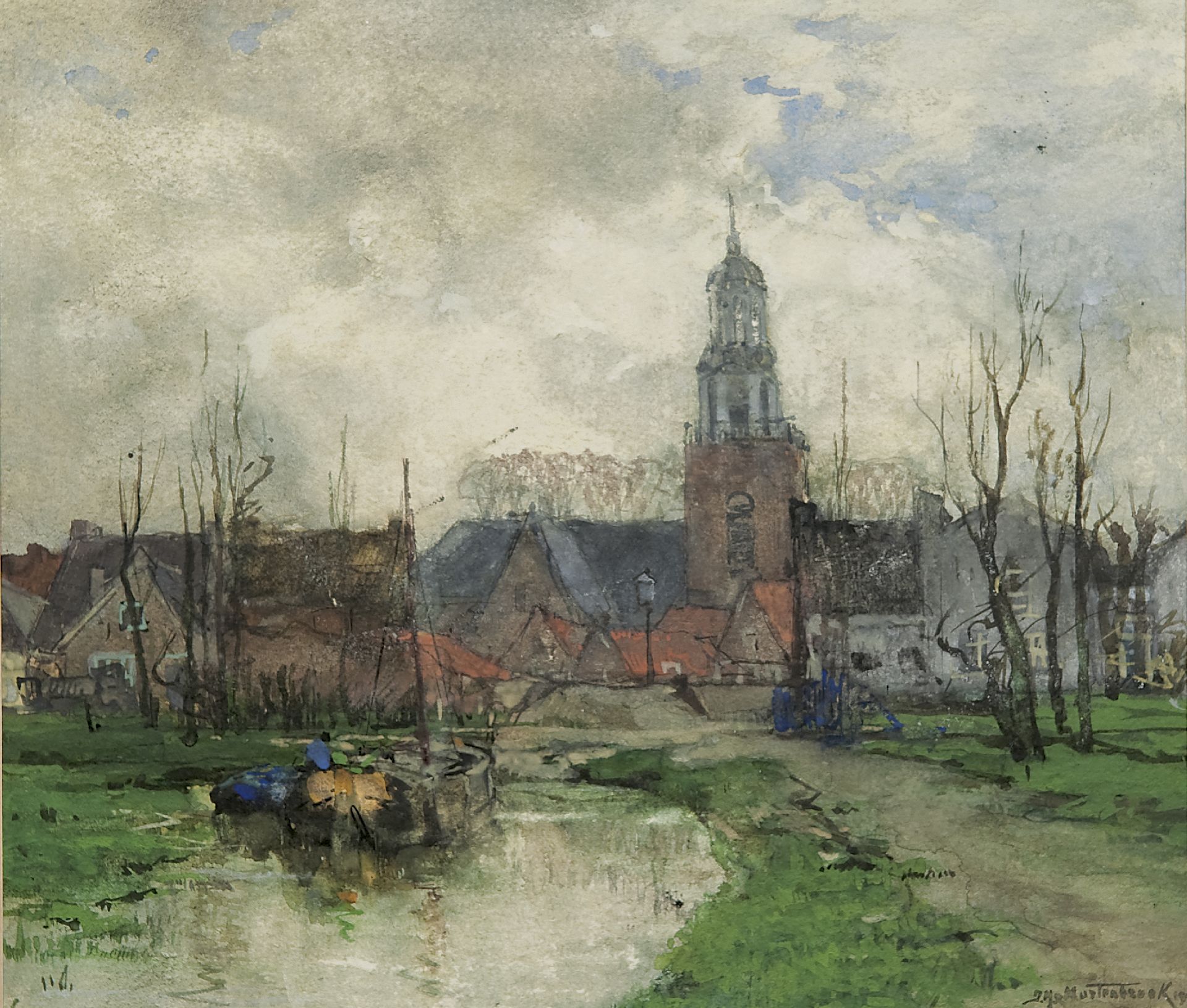 Johan Hendrik van Mastenbroek kunstwerk • aquarel • tekening • voorheen te koop Gezicht op Streefkerk