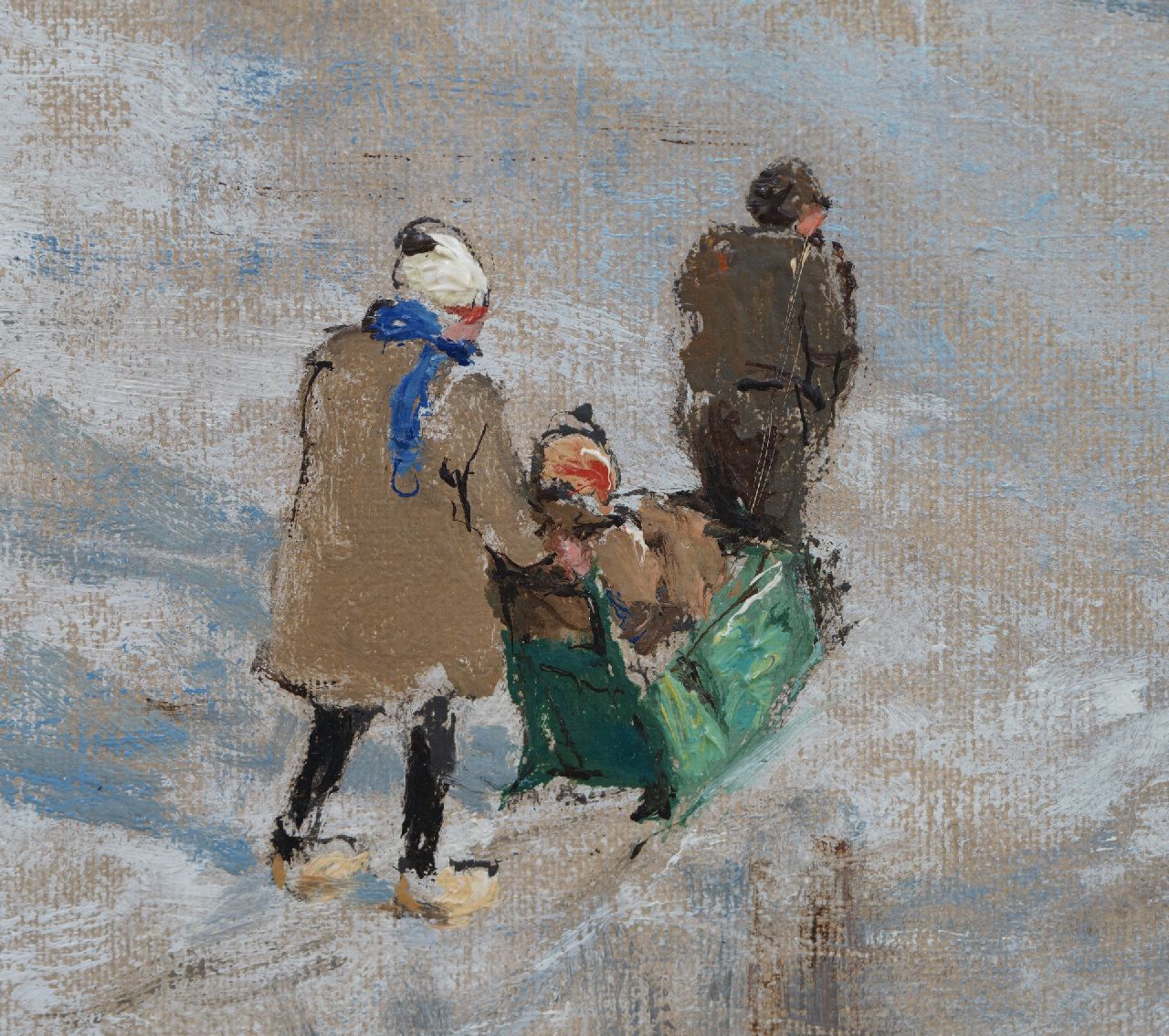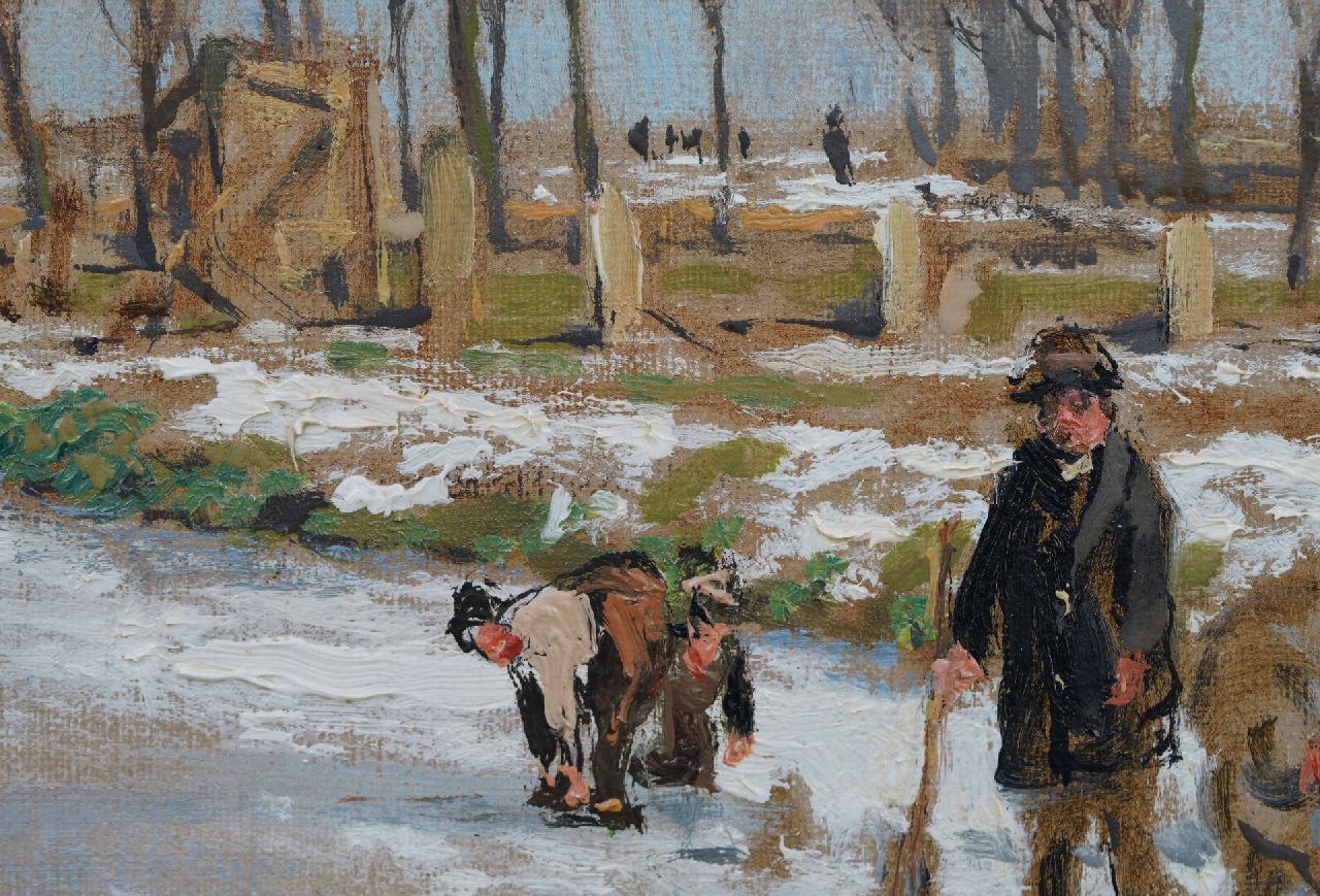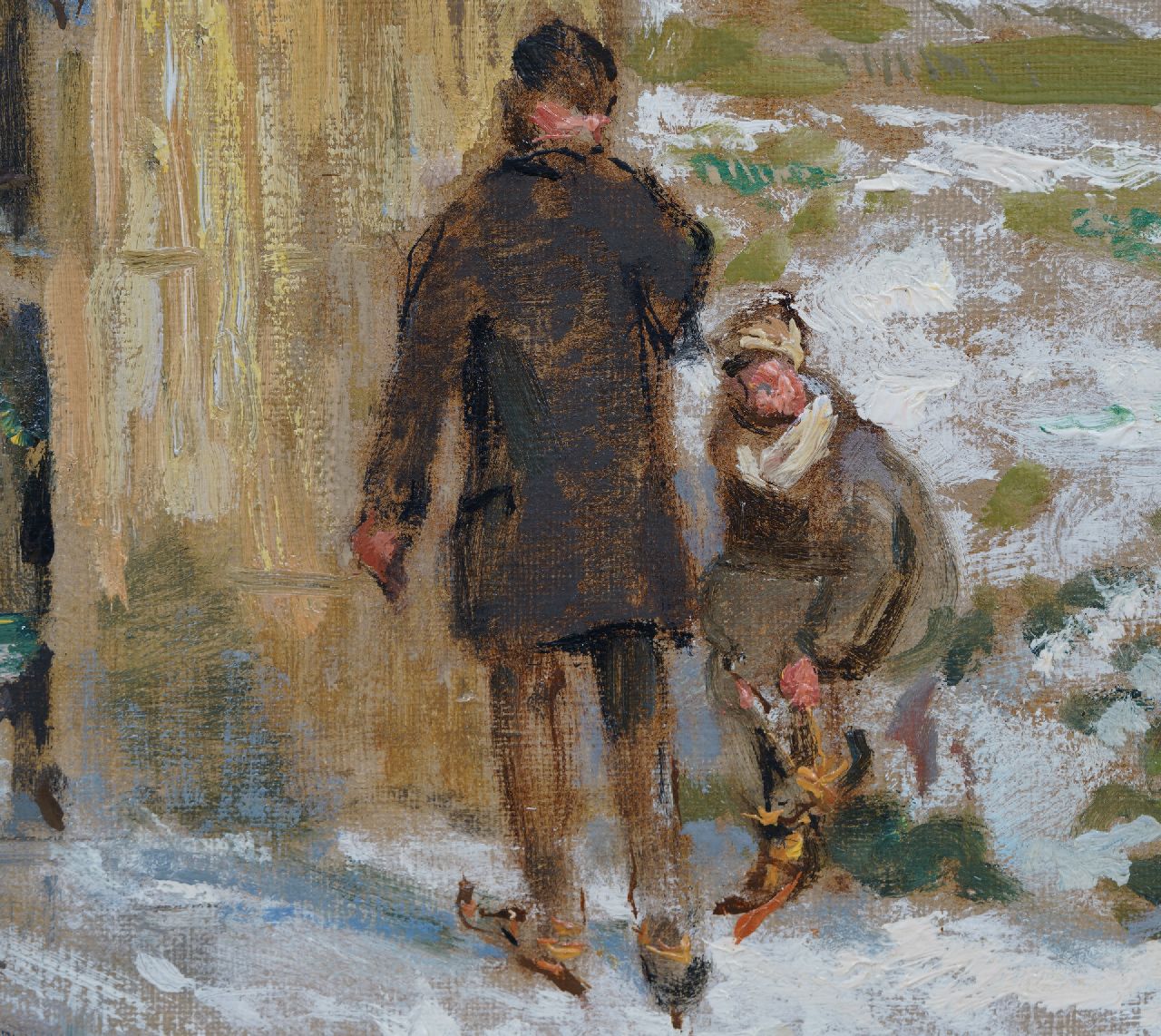 'IJsvreugde op Holland's vaarten' zoals de schilder het werk noemt op het etiket aan achterzijde betreft een prachtig voorbeeld een andere kwaliteit van Van Mastenbroek. Er zijn van de schilder slechts twee van dergelijke winters met schaatsers en koek-en-zopie bekend. Johan Hendrik van Mastenbroek is bekend geworden als schilder van de Rotterdamse havens, de Maas en de Zuiderzeewerken. Zijn werk documenteert als het ware de grote technische vooruitgang en de snel toenemende bedrijvigheid in de Rotterdamse havens na 1900. De schilder schetste graag buiten bij regenachtig weer om de schoonheid van de luchten en de heldere kleuren: 'Ik kon staan smullen van de heerlijke wolkenformaties en van den aan kleuren zo rijken strijd tusschen zon en wolken' schreef hij aan een vriend in 1945. Mastenbroek oogstte bij zijn leven al in brede kring veel succes met zijn werk.