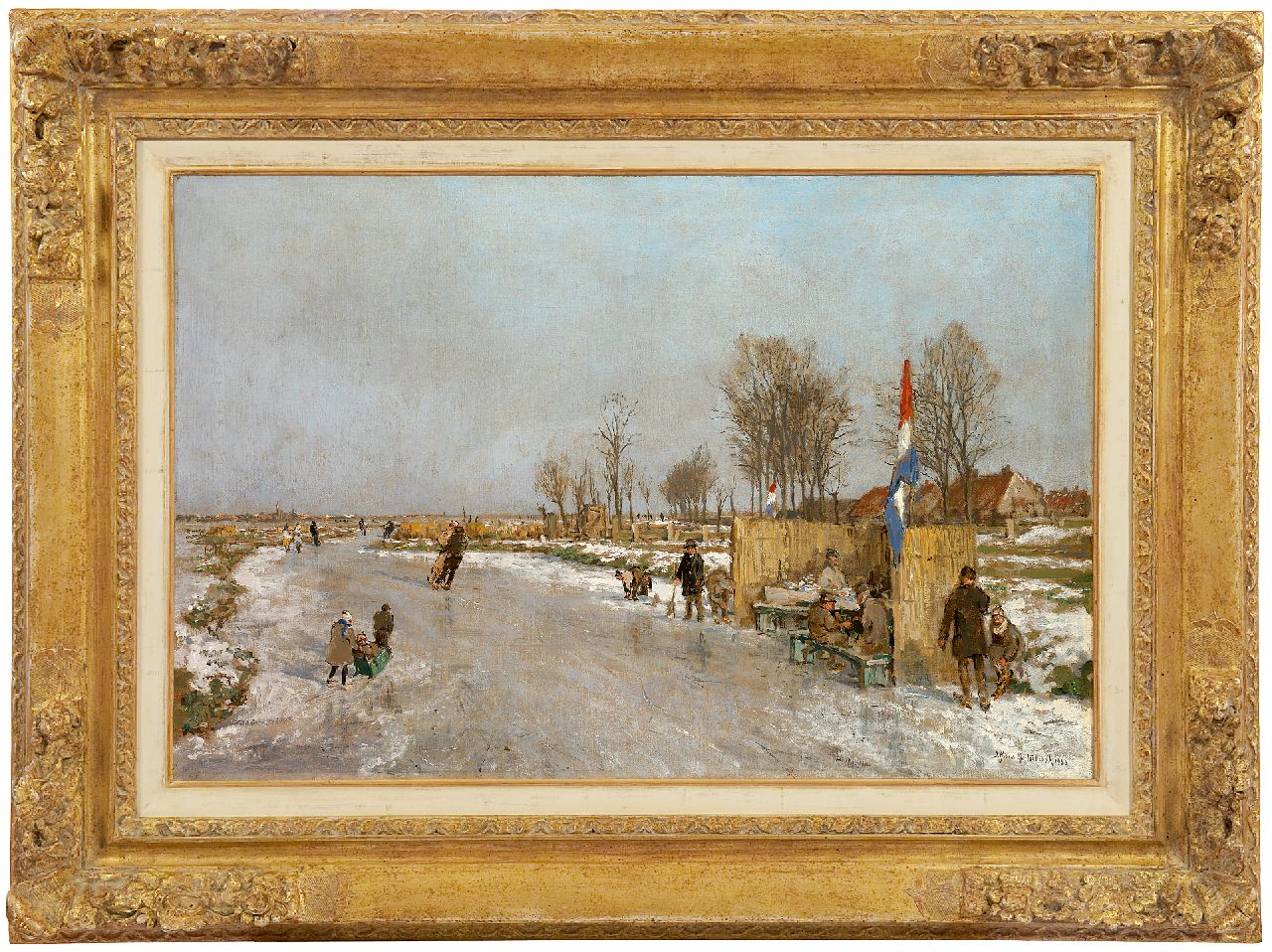 Johan Hendrik van Mastenbroek kunstwerk • schilderij • voorheen te koop IJsvreugde op Holland's vaarten, met koek en zopie
