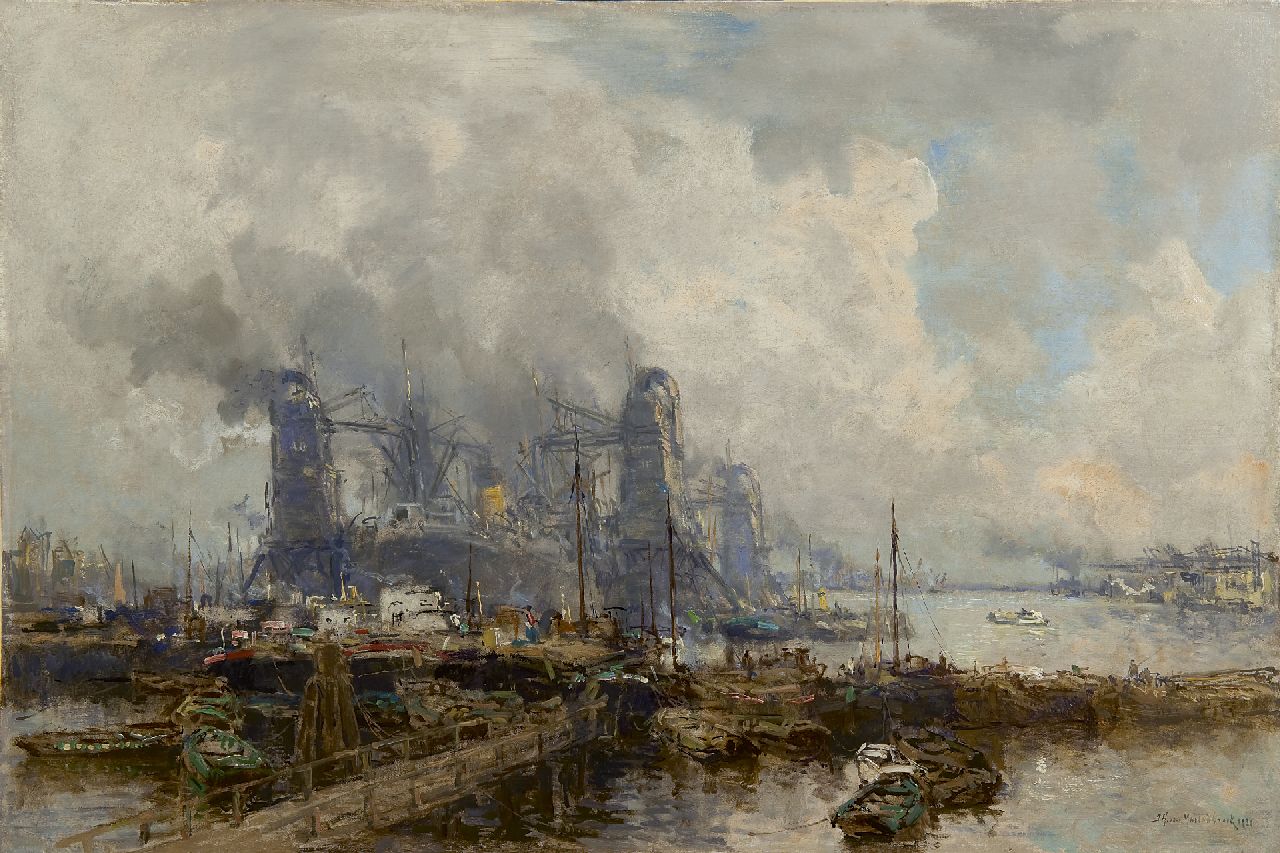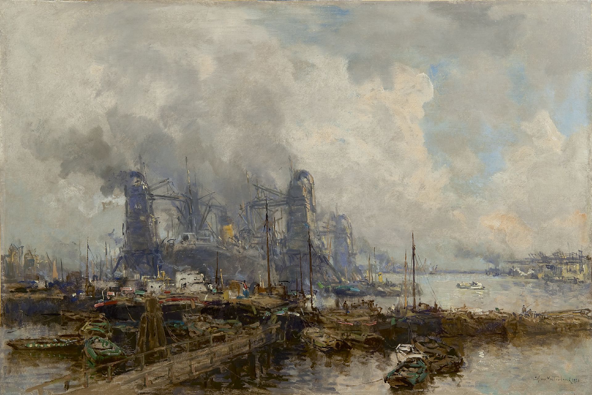 Johan Hendrik van Mastenbroek kunstwerk • schilderij • voorheen te koop Lichters in de Maashaven, Rotterdam