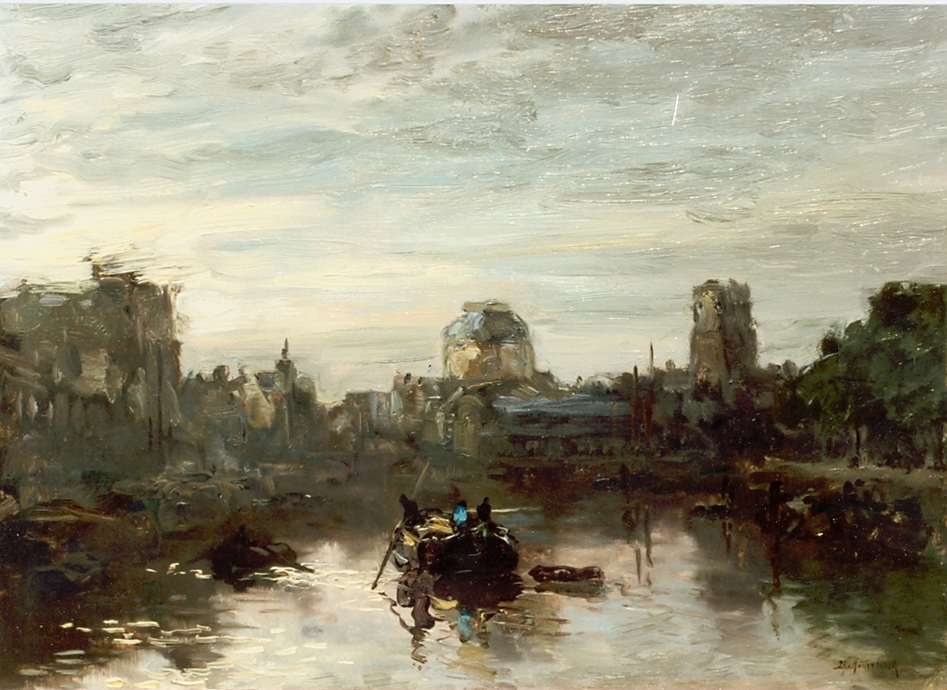 Johan Hendrik van Mastenbroek kunstwerk • schilderij • voorheen te koop Rotterdam bij avond