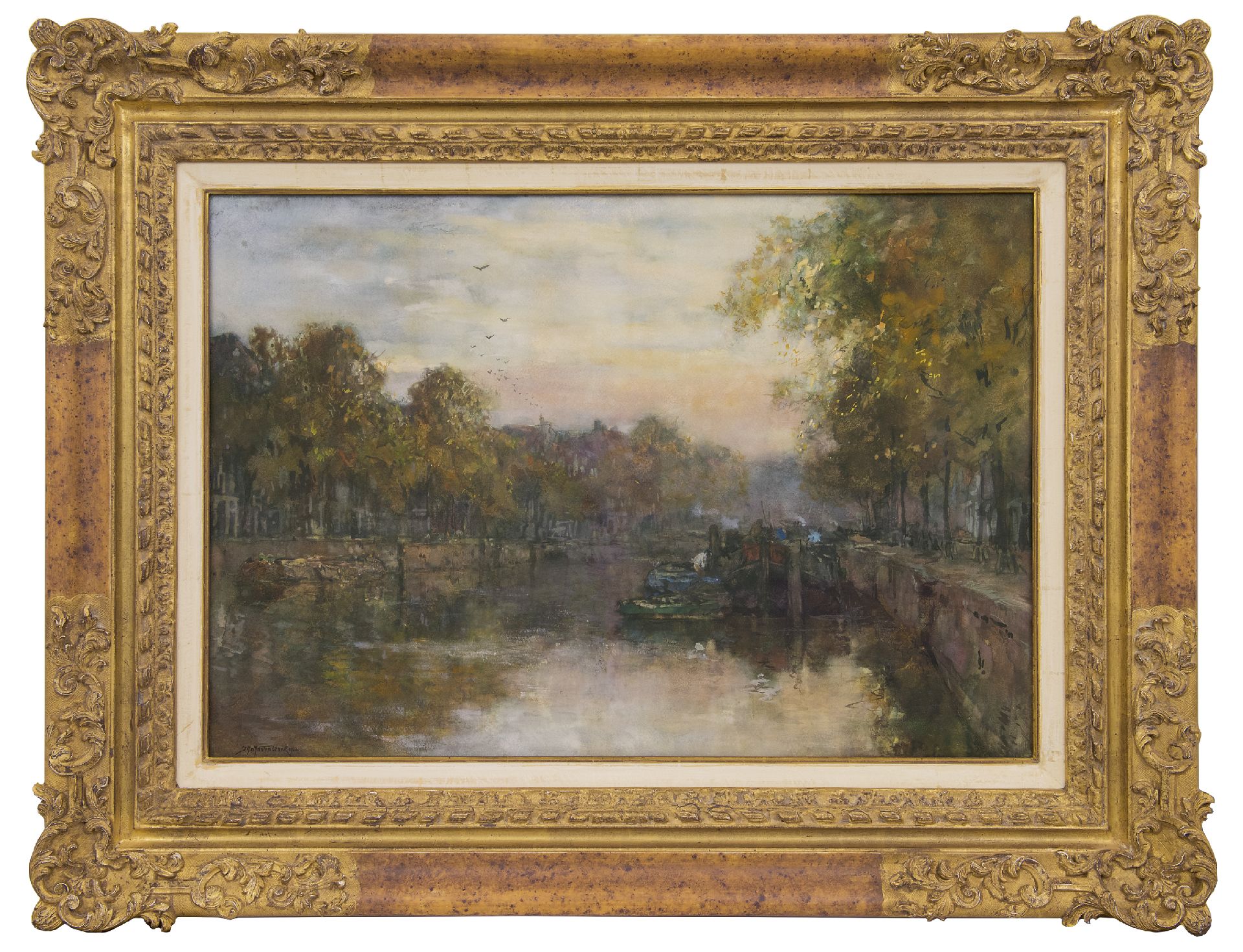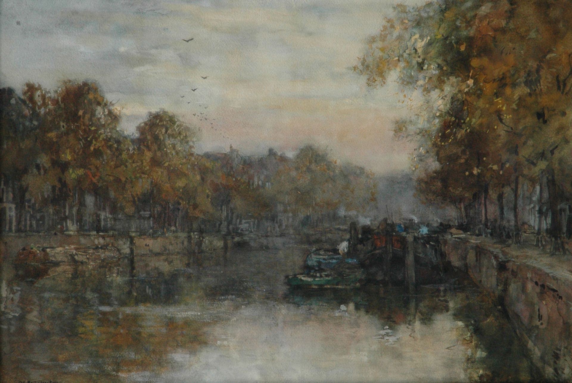 Johan Hendrik van Mastenbroek kunstwerk • aquarel • tekening • te koop Zonsondergang Leuvehaven, Rotterdam
