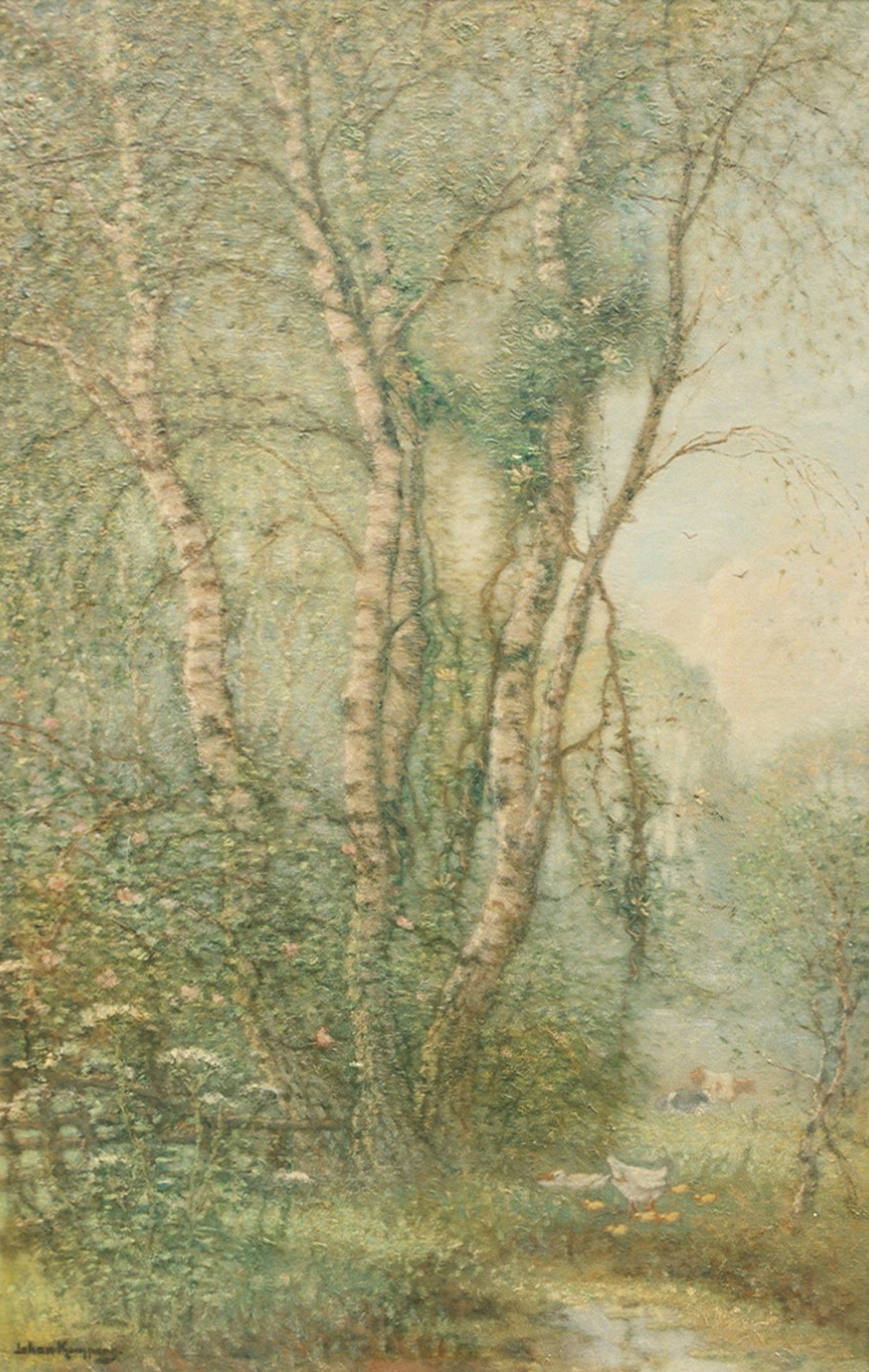 Johan Kuijpers kunstwerk • schilderij • voorheen te koop Berkenboom in ochtendnevel