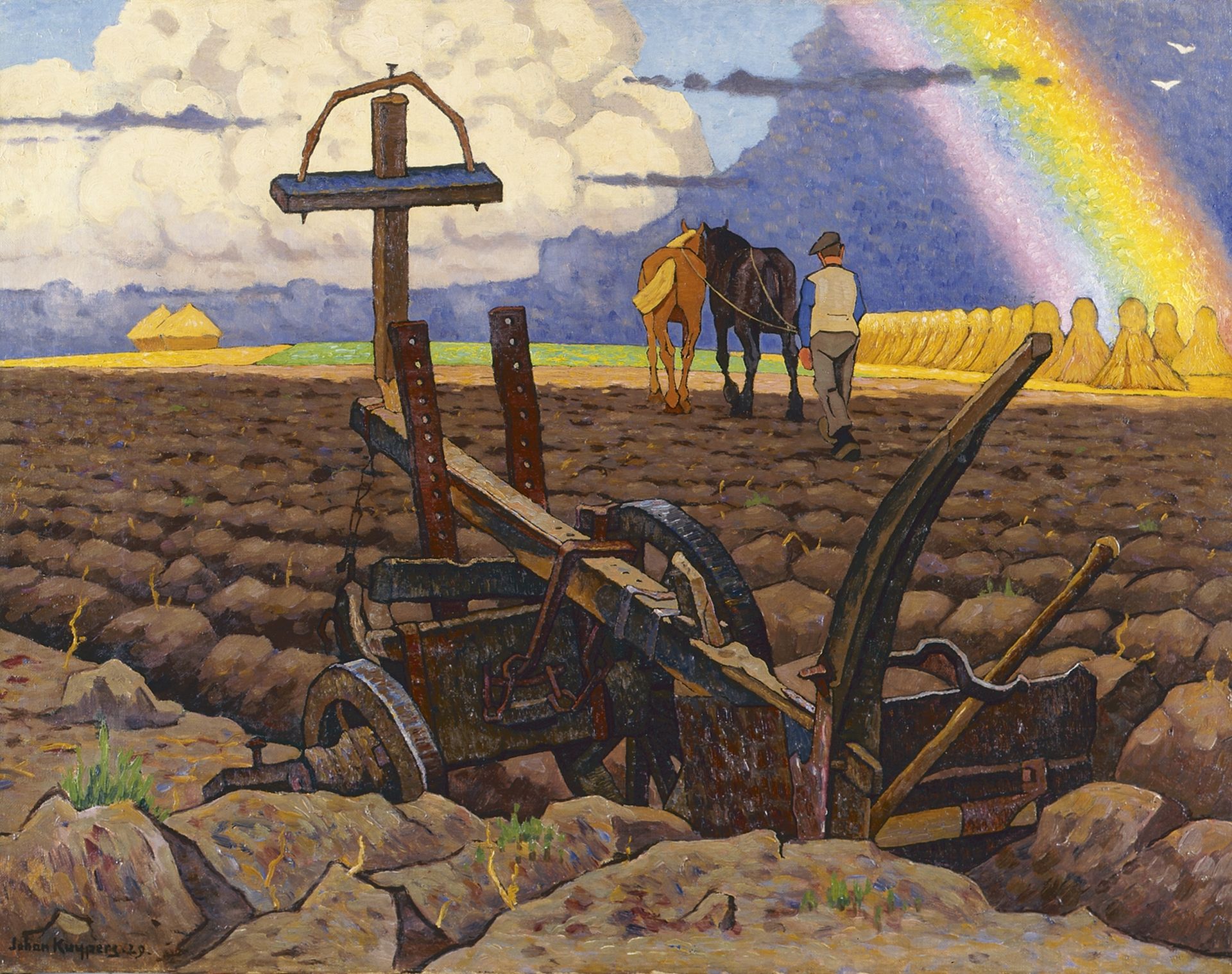 Johan Kuijpers kunstwerk • schilderij • voorheen te koop Regenboog boven omgeploegde akker
