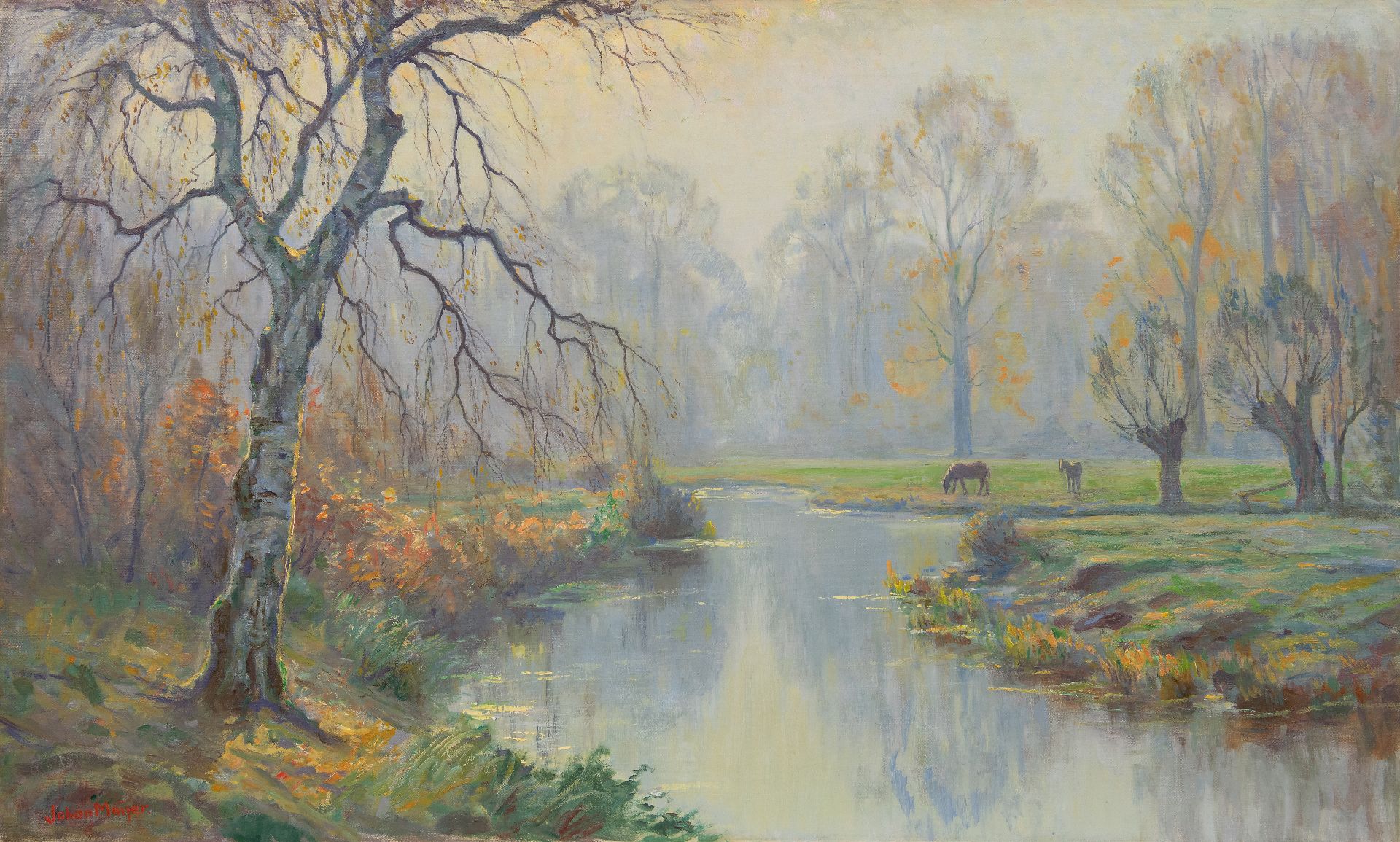 Johan Meijer kunstwerk • schilderij • voorheen te koop Herfstmorgen, Blaricum