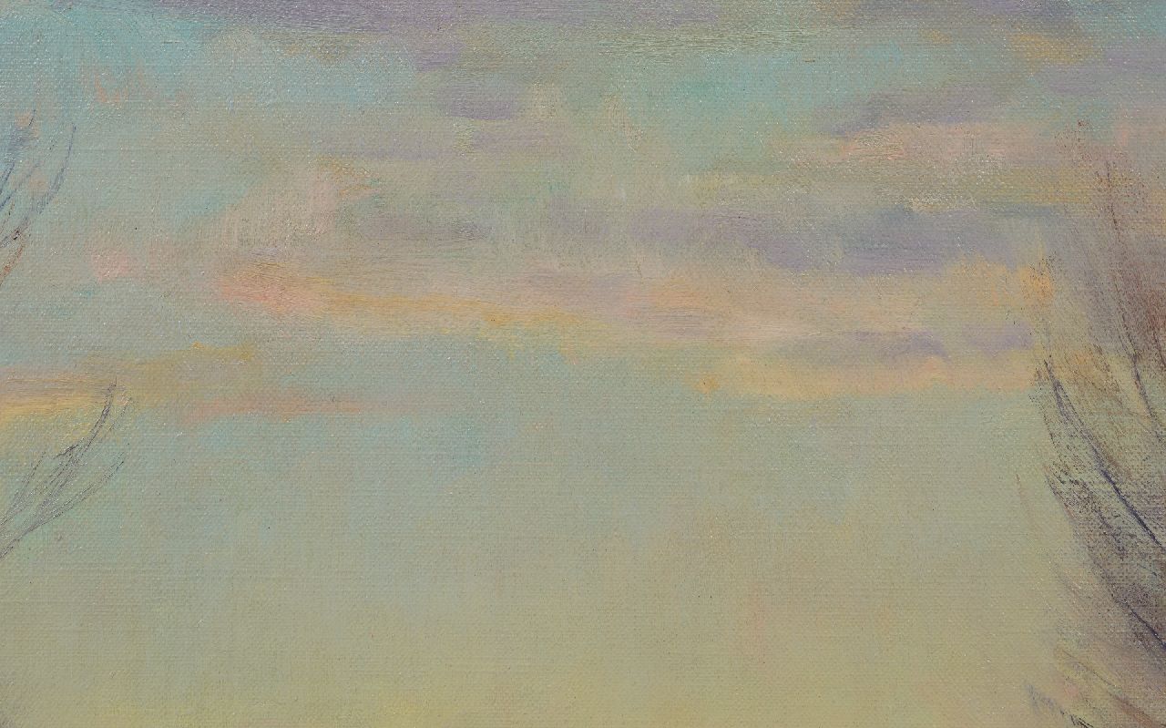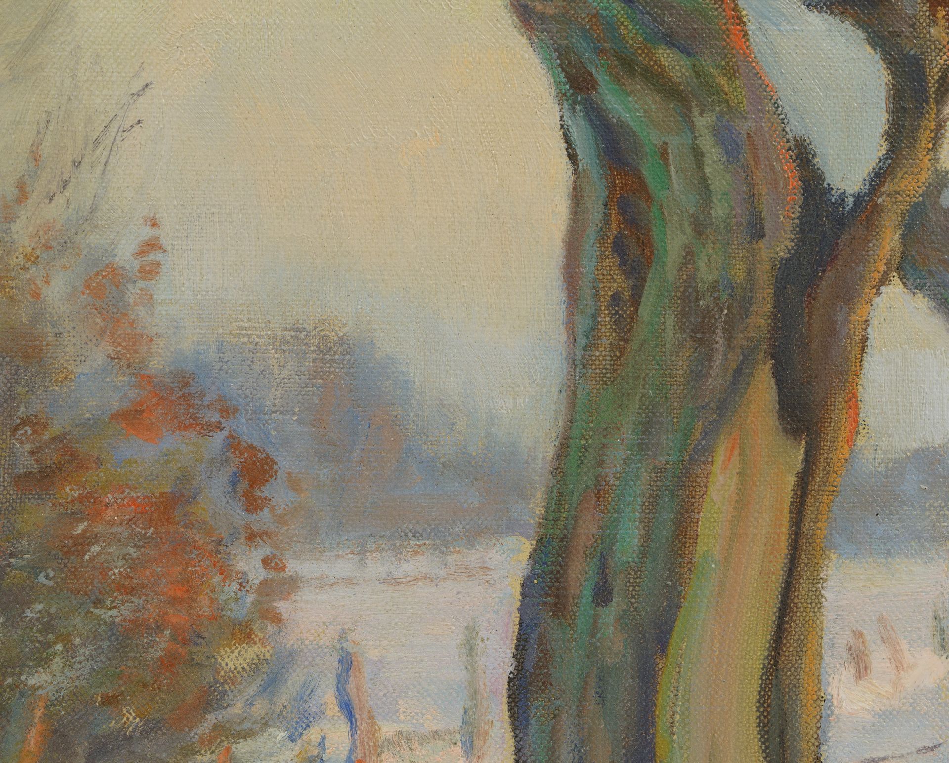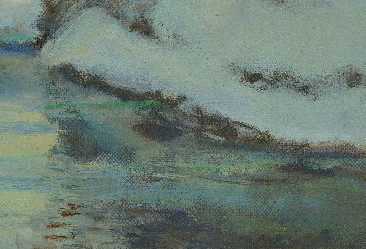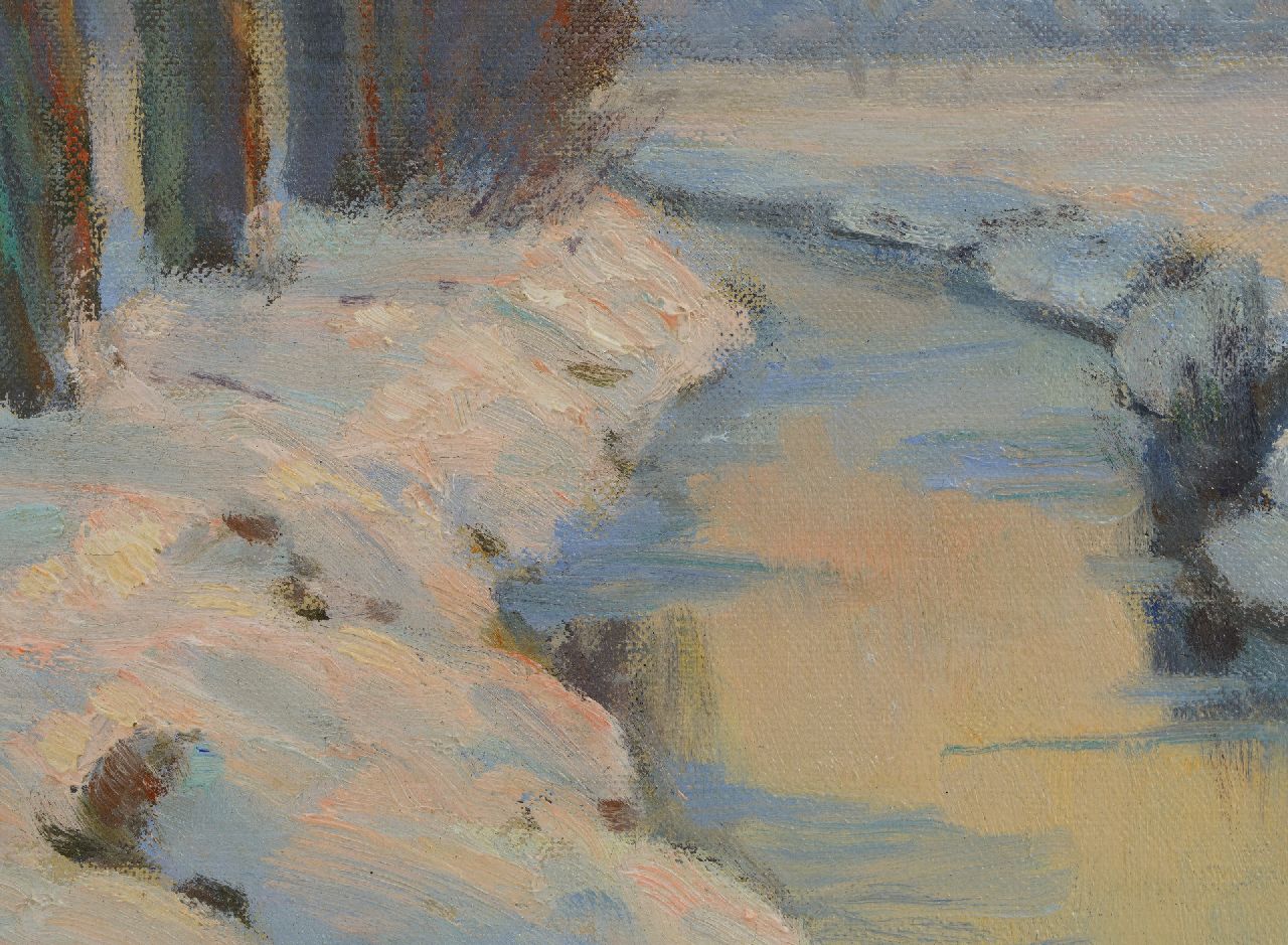Johan Meijer kunstwerk • schilderij • voorheen te koop Sneeuwlandschap bij zonsopgang
