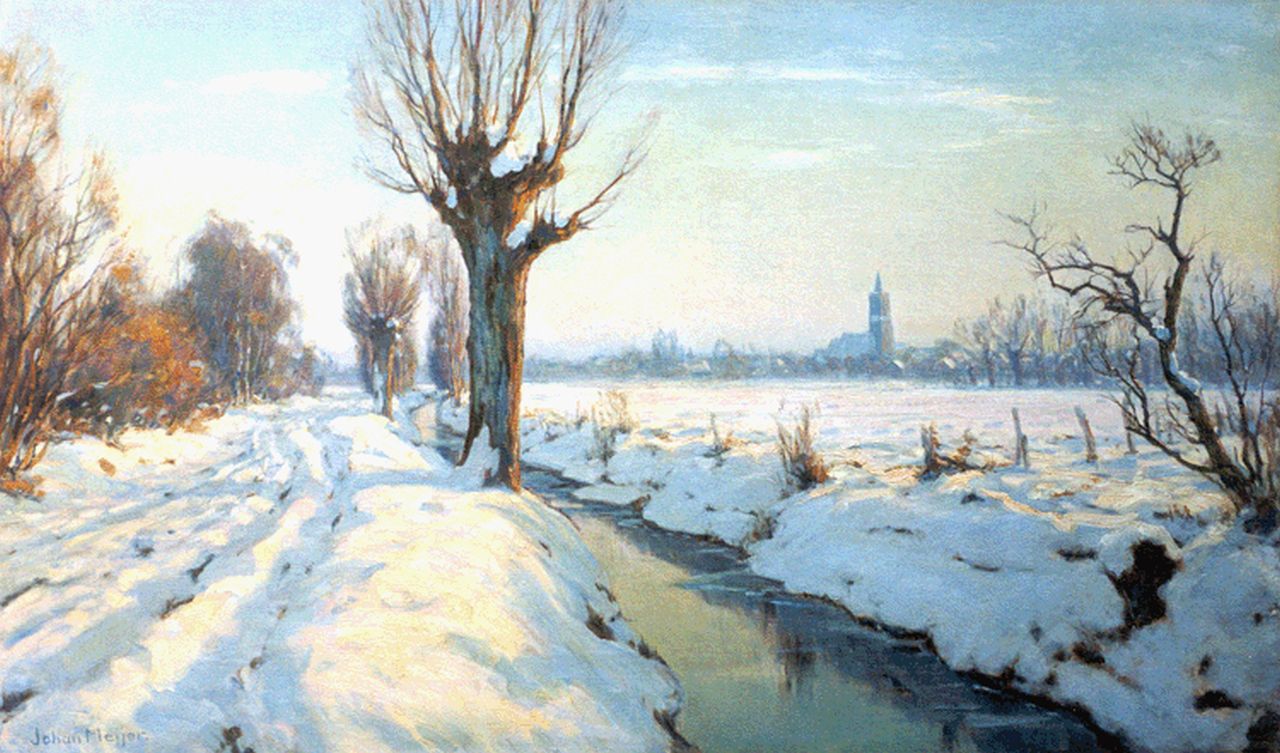 Johan Meijer kunstwerk • schilderij • voorheen te koop Winteravond-Zon bij Blaricum