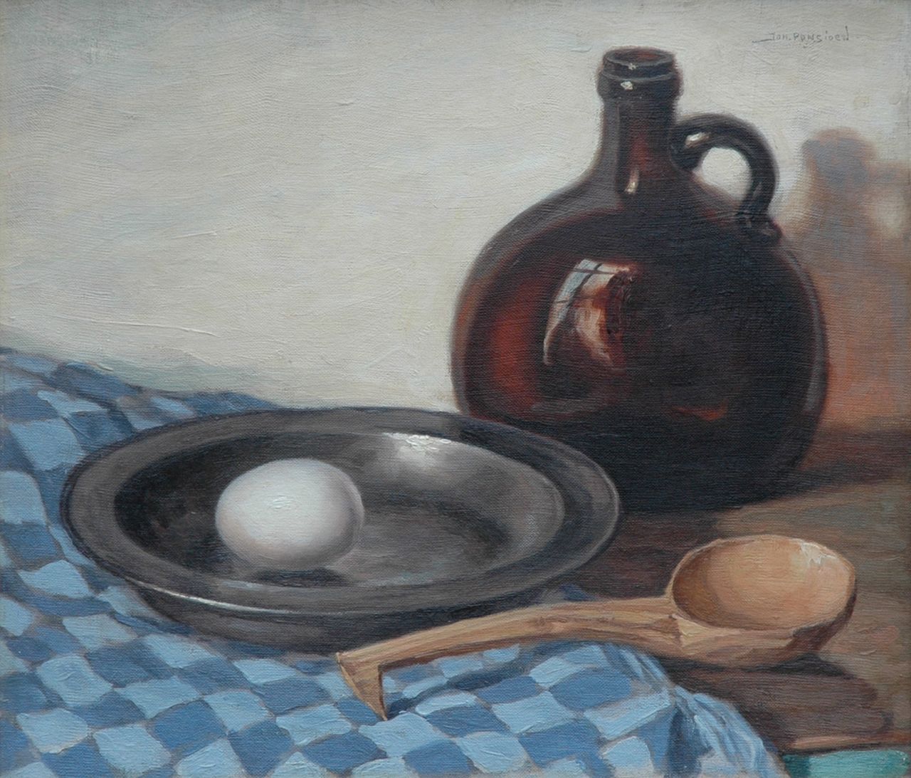 Johan Ponsioen kunstwerk • schilderij • voorheen te koop Stilleven met tinnen bord en fles