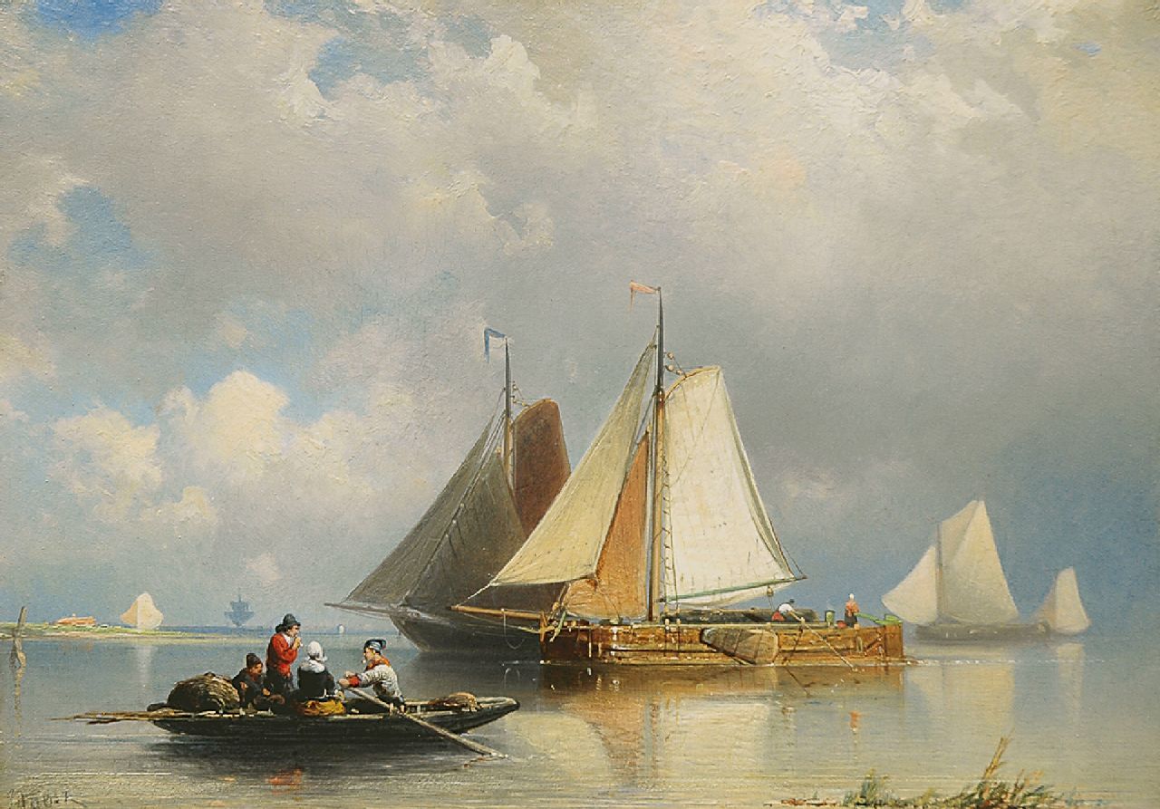 Johan Rust kunstwerk • schilderij • voorheen te koop Aken in ondiep water bij kalm weer