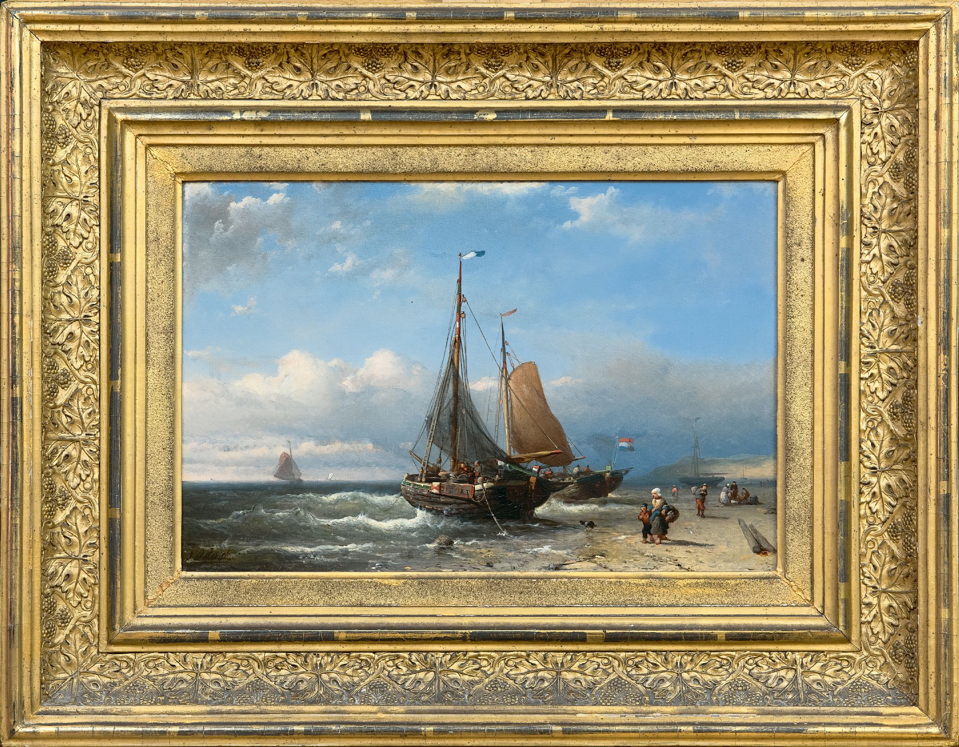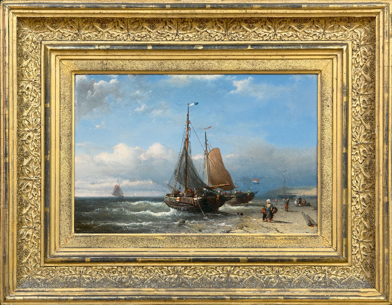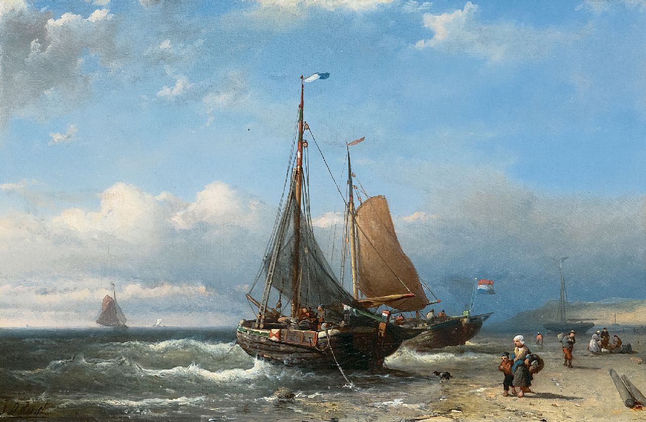 Johan Rust kunstwerk • schilderij • te koop Pinken voor anker op het strand