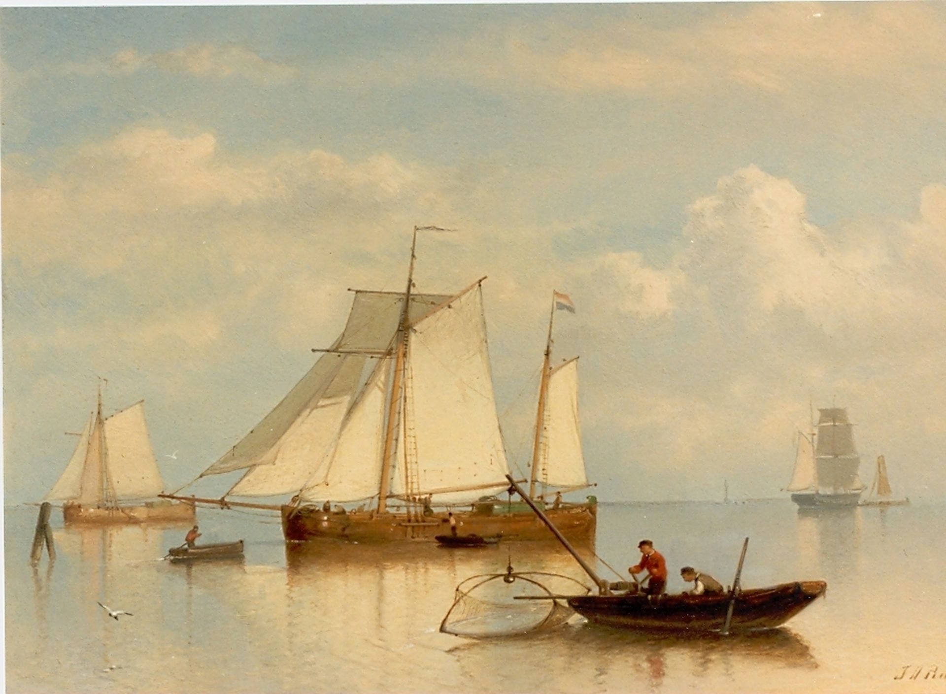 Johan Rust kunstwerk • schilderij • voorheen te koop Vissersboten op kalme zee