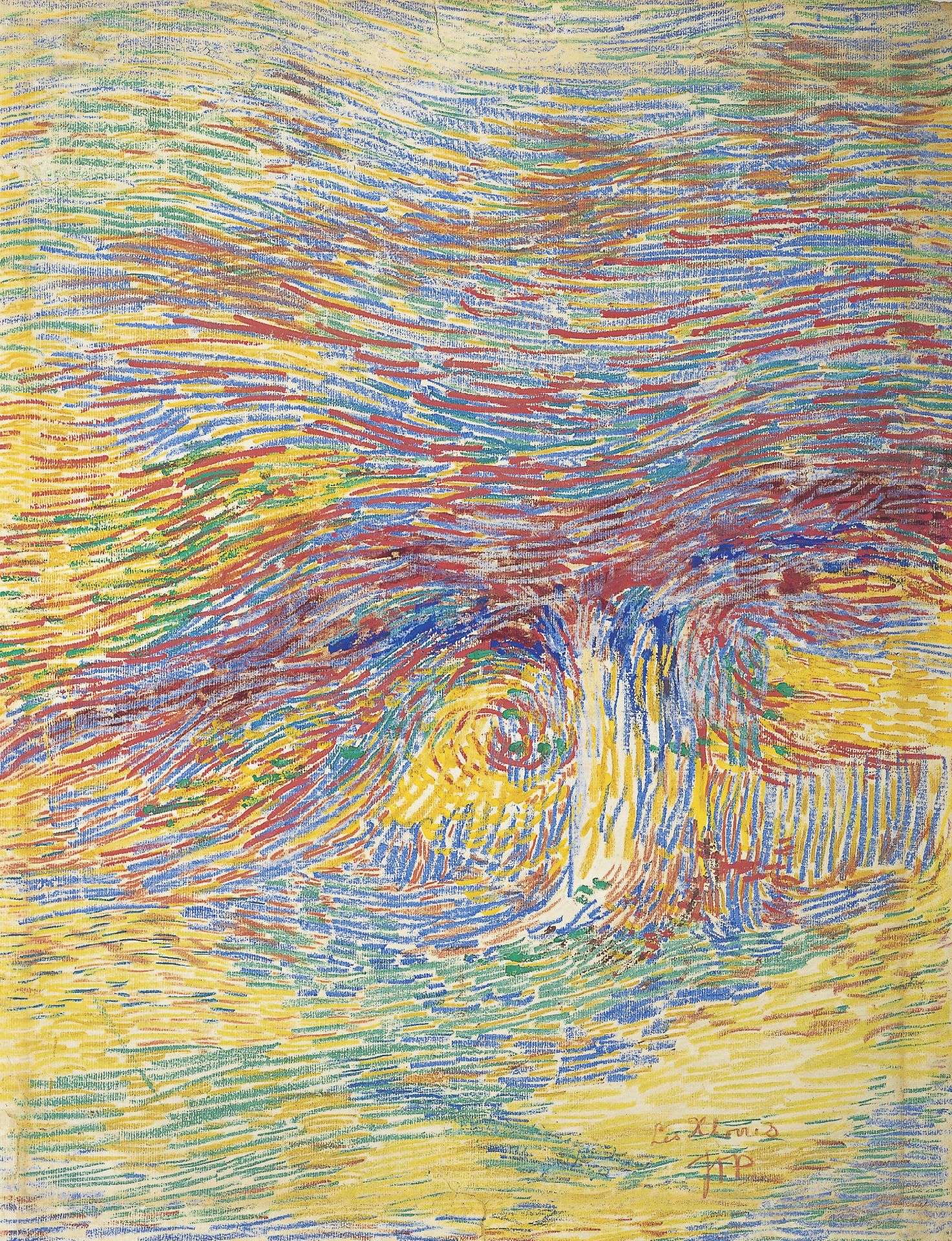 Tussen 1900 en 1904 bracht Johan Thorn Prikker de zomermaanden door in het Belgische dorpje Visé. Daar ontstond een serie landschapsverbeeldingen in waskrijt, waaronder 'Les Xhorres'. De voorstelling, een solitaire boom met breed uitwaaierende takken, is opgelost in een wemeling van kleurstrepen die zich samenvoegen tot een brede, golvende stroom. Thorn Prikker behoorde tot de Hollandse symbolisten, kunstenaars die in hun werk uiting wilden geven aan gevoelens, een droom- en gedachtenwereld of innerlijke visies. In deze tekening wilde de kunstenaar dus niet alleen de schoonheid van de boom weergeven, maar ook wilde hij het wezen van die schoonheid aanschouwelijk maken. Middelen daartoe waren voor hem kleur en lijn, die hier het gevoel zelf zijn geworden.