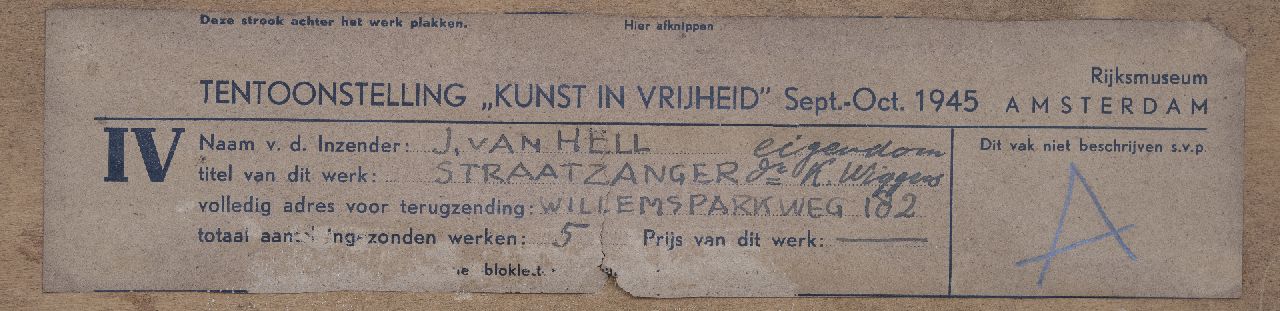 Johan van Hell kunstwerk • schilderij • voorheen te koop Straatzanger