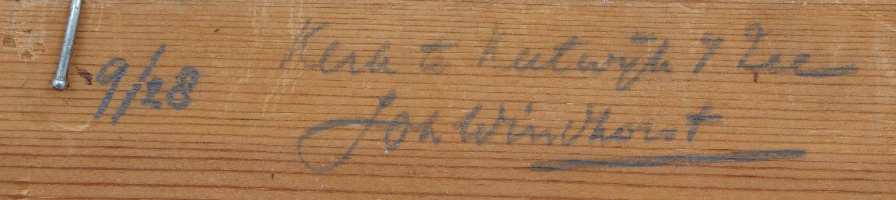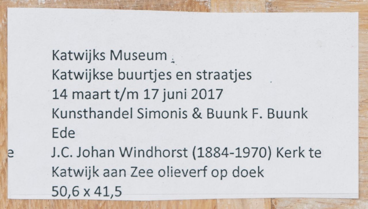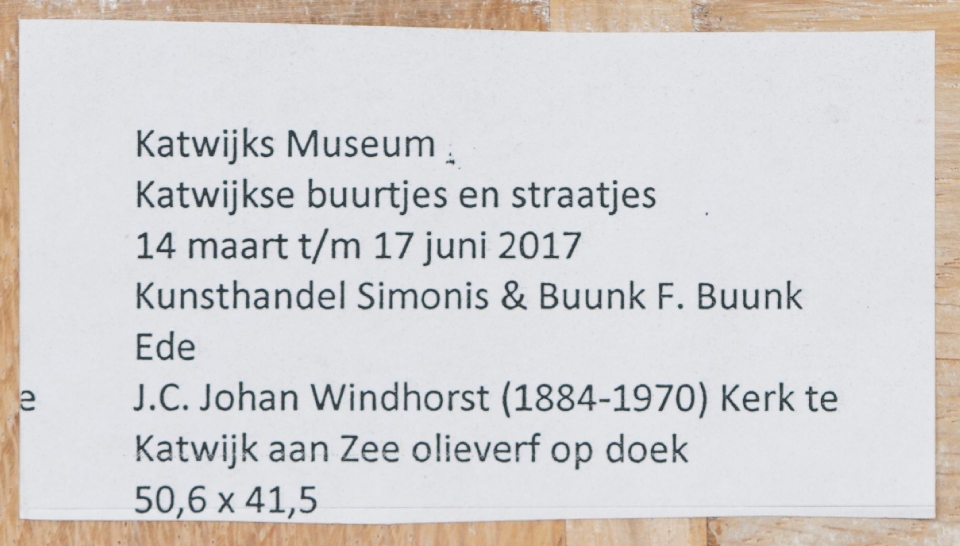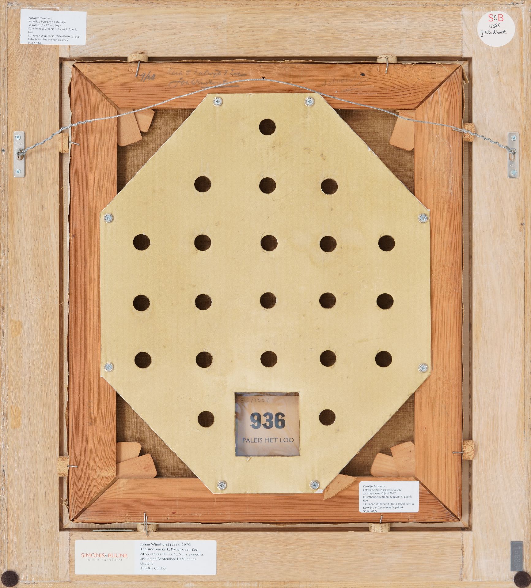 annotatie op spieraam: '9/28 Kerk te Katwijk a/ Zee Joh. Windhorst' en verso voorzien van papieren domeinlabel Paleis Het Loo, inv.nr. 936.