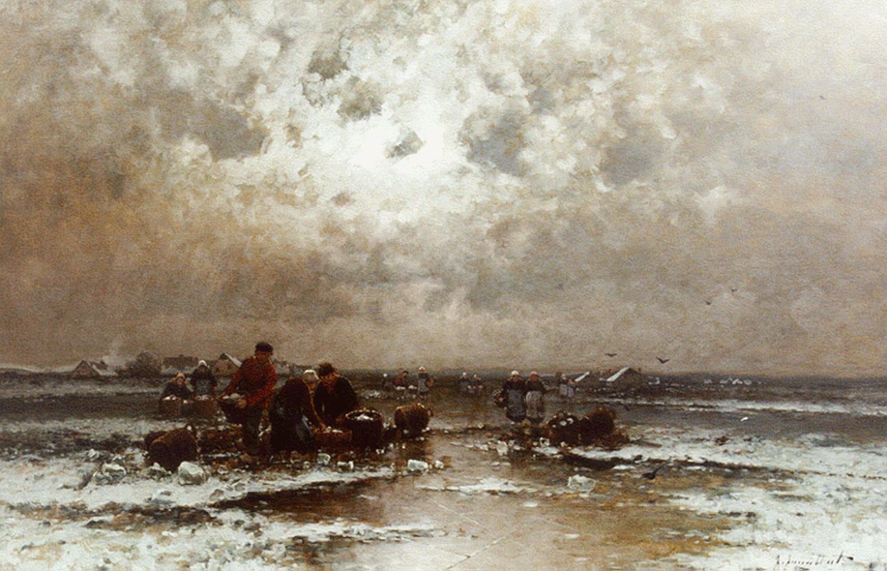 Johann Jungblut kunstwerk • schilderij • voorheen te koop Vissersvolk op het ijs
