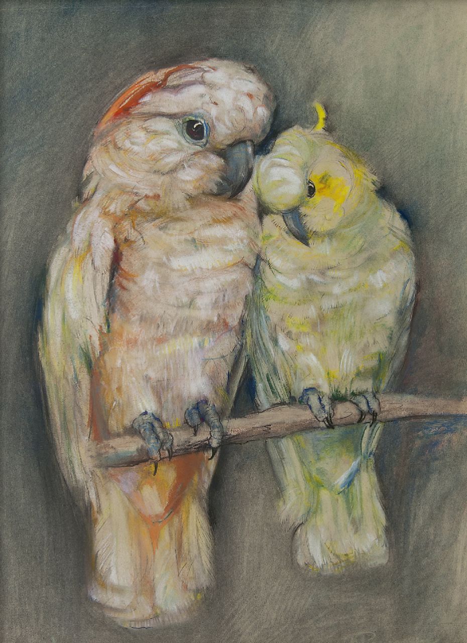 Johanna Pieneman kunstwerk • aquarel • tekening • voorheen te koop Twee kaketoes