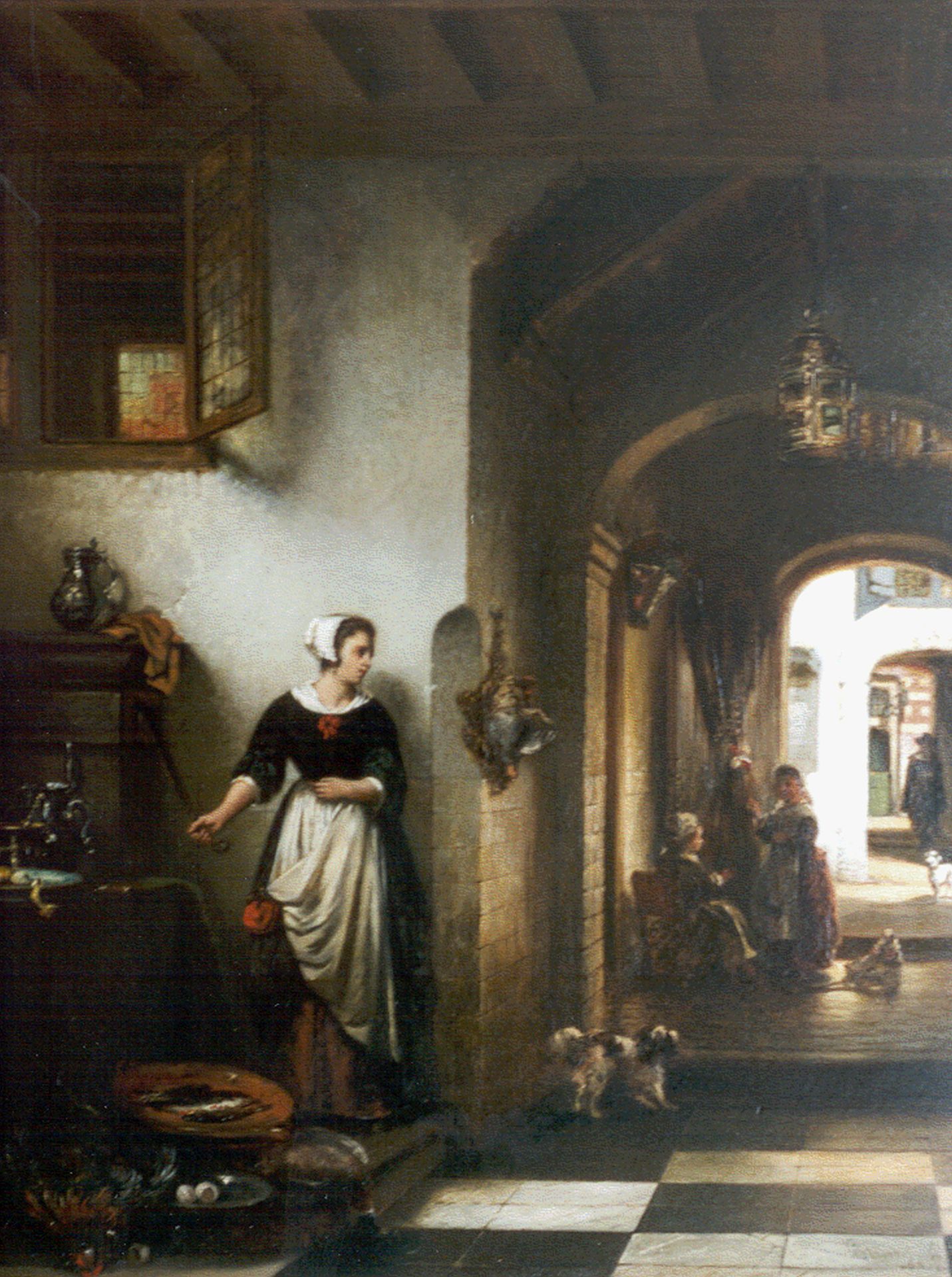 Johannes Anthonie Balthasar Stroebel kunstwerk • schilderij • voorheen te koop Hollands interieur met figuren