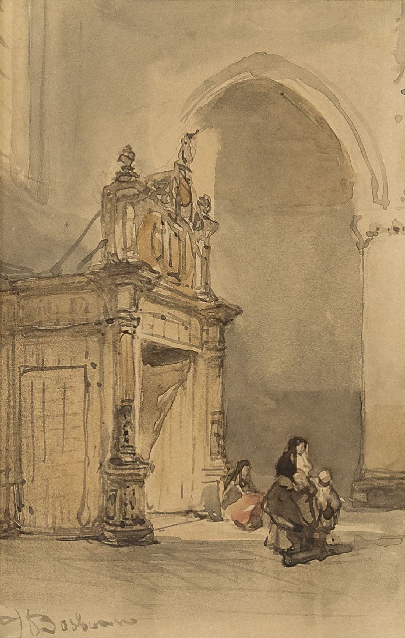Johannes Bosboom kunstwerk • aquarel • tekening • voorheen te koop Hollands kerkinterieur (mogelijk de Noorderkerk, Hoorn)