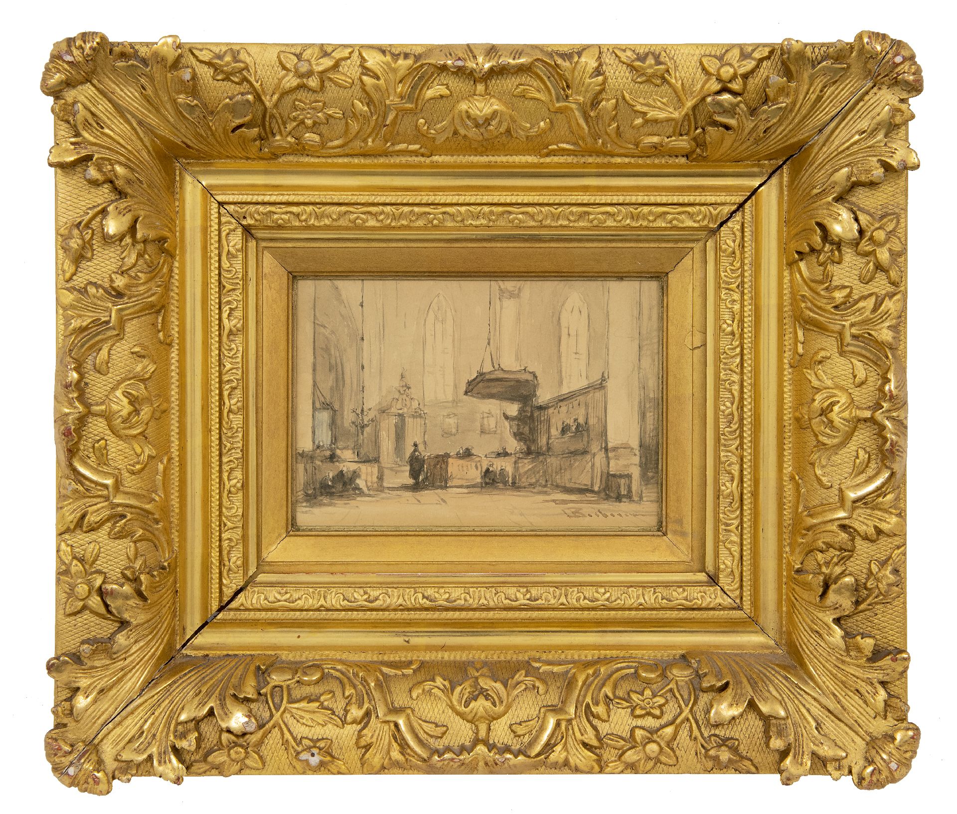 Johannes Bosboom kunstwerk • aquarel • tekening • voorheen te koop Interieur van de Grote Kerk te Alkmaar