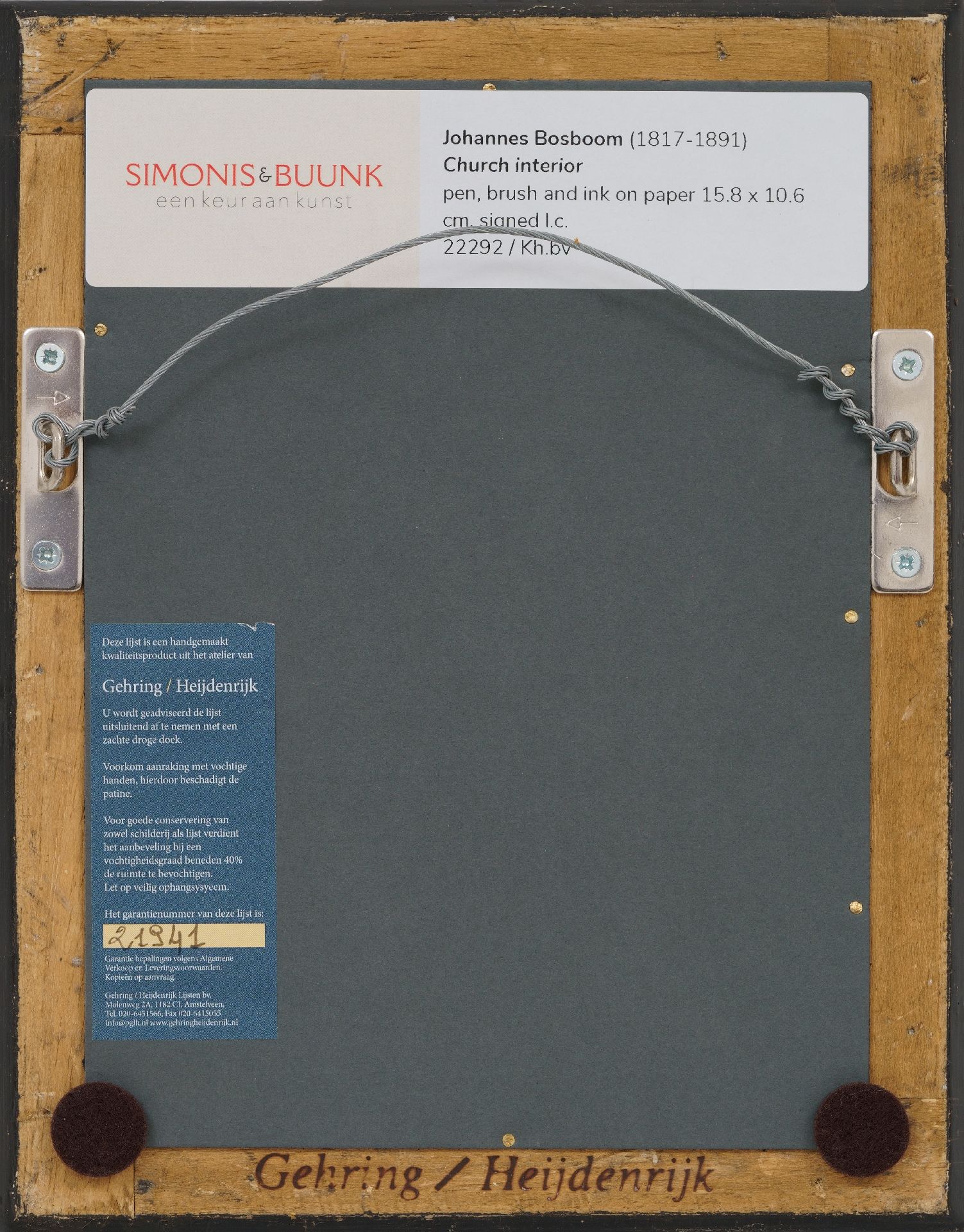 Johannes Bosboom werd in 1817 geboren in Den Haag en ging in de leer bij de stadsgezichtenschilder Bart van Hove. Al spoedig koos hij het kerkinterieur als zijn specialiteit, daartoe aangemoedigd door de lof van zijn tijdgenoten. Zijn aquarellen en schilderijen tonen verstilde kerkinterieurs, bevolkt door figuren in 17e-eeuwse kledij. Als 'Haagse Scholer' probeerde hij de indrukken weer te geven die het gebouw op hem maakte. Daarnaast was hij geïnspireerd door de lichtval en atmosfeer in het werk van de 17e-eeuwse schilders Rembrandt en Emanuel de Witte.