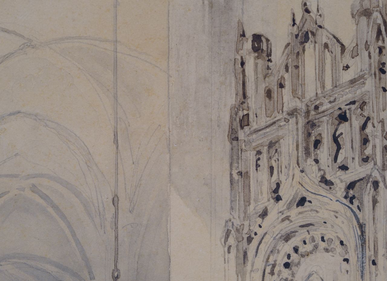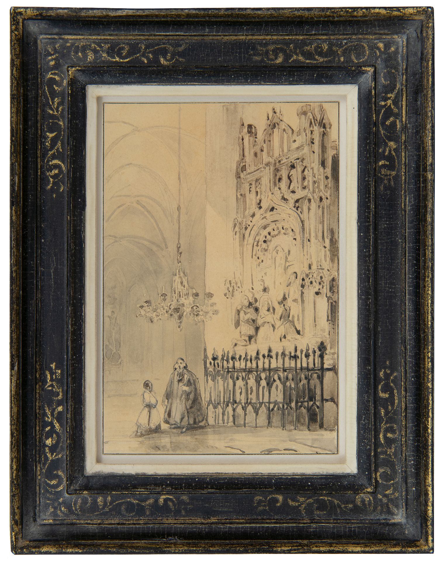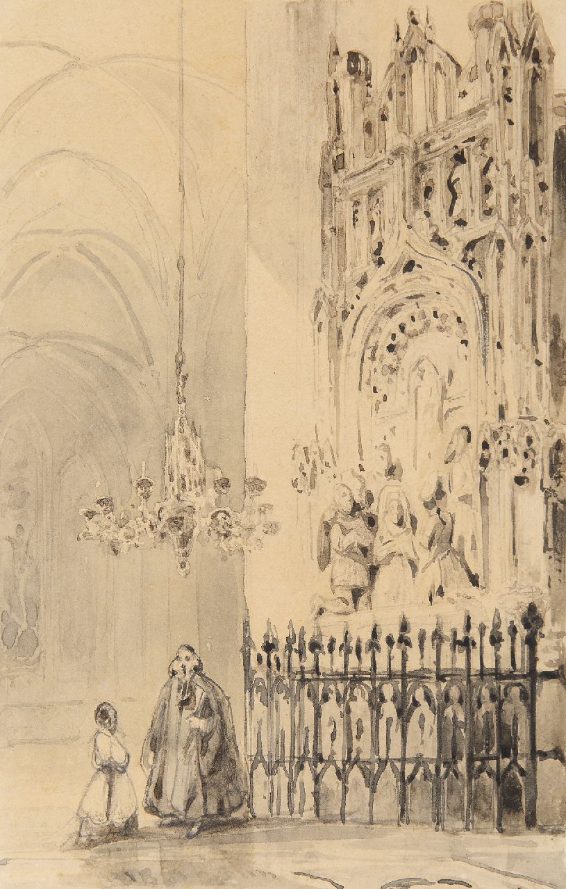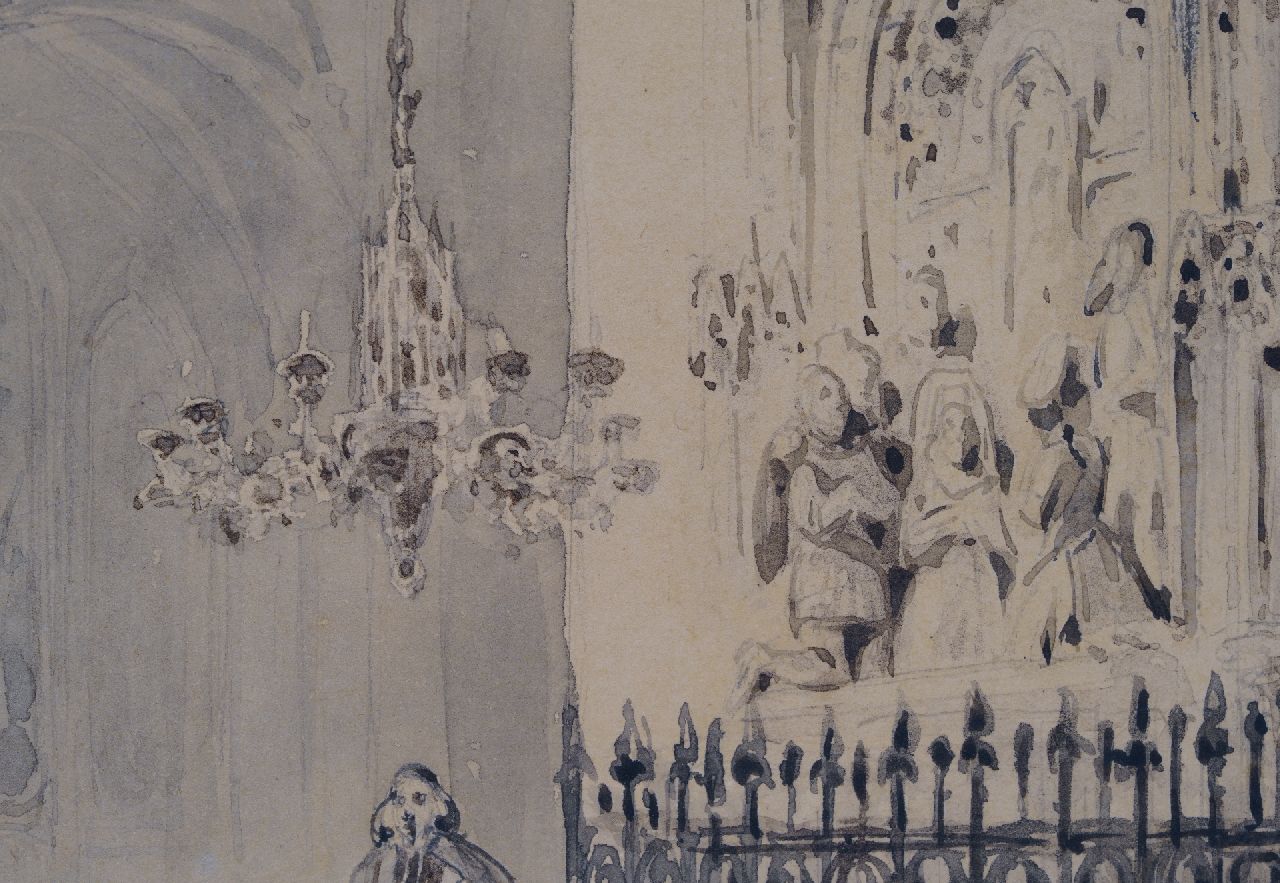 Johannes Bosboom kunstwerk • aquarel • tekening • voorheen te koop Interieur van de Grote Kerk te Breda met het grafmonument van Engelbert I van Nassau
